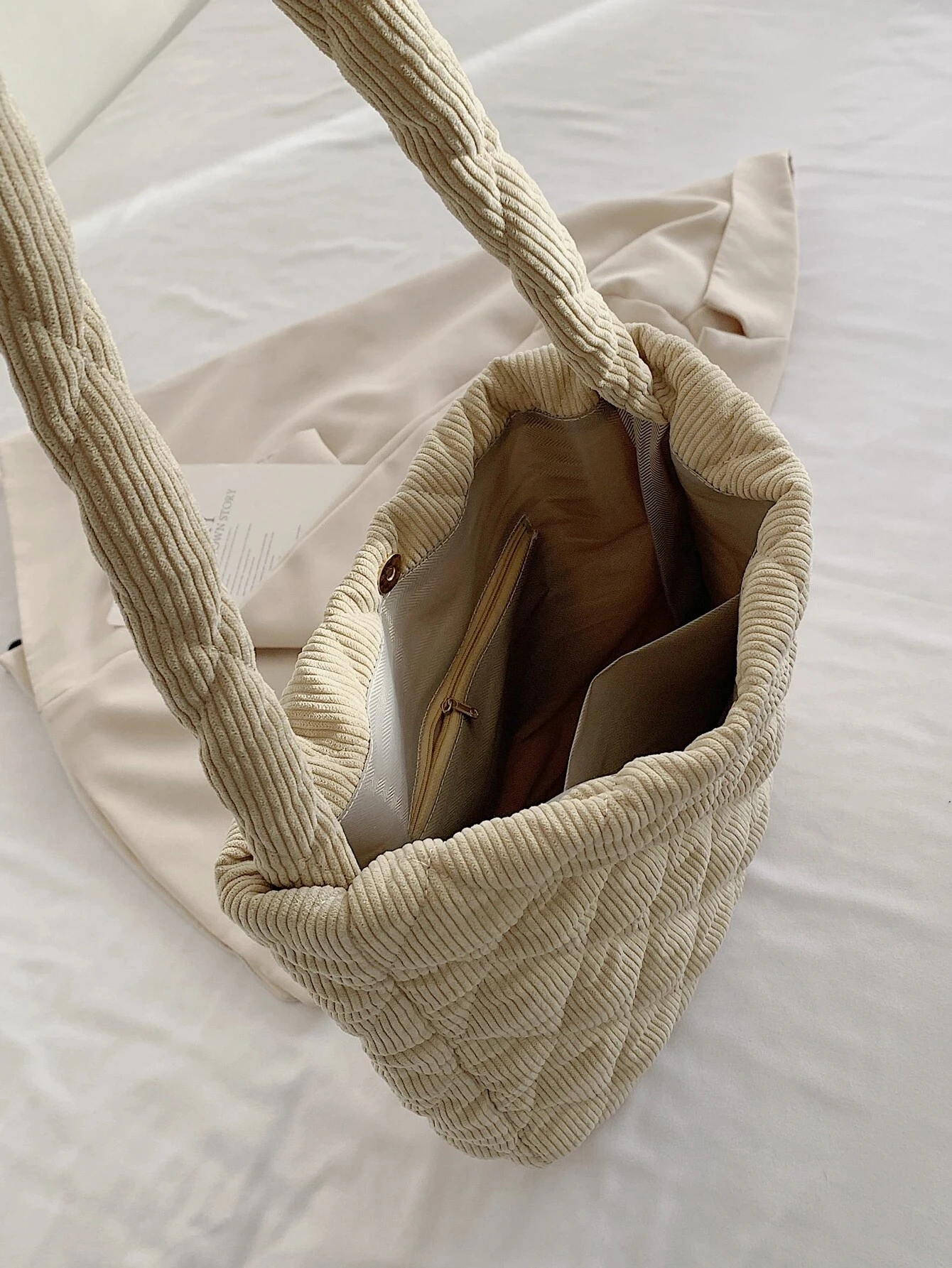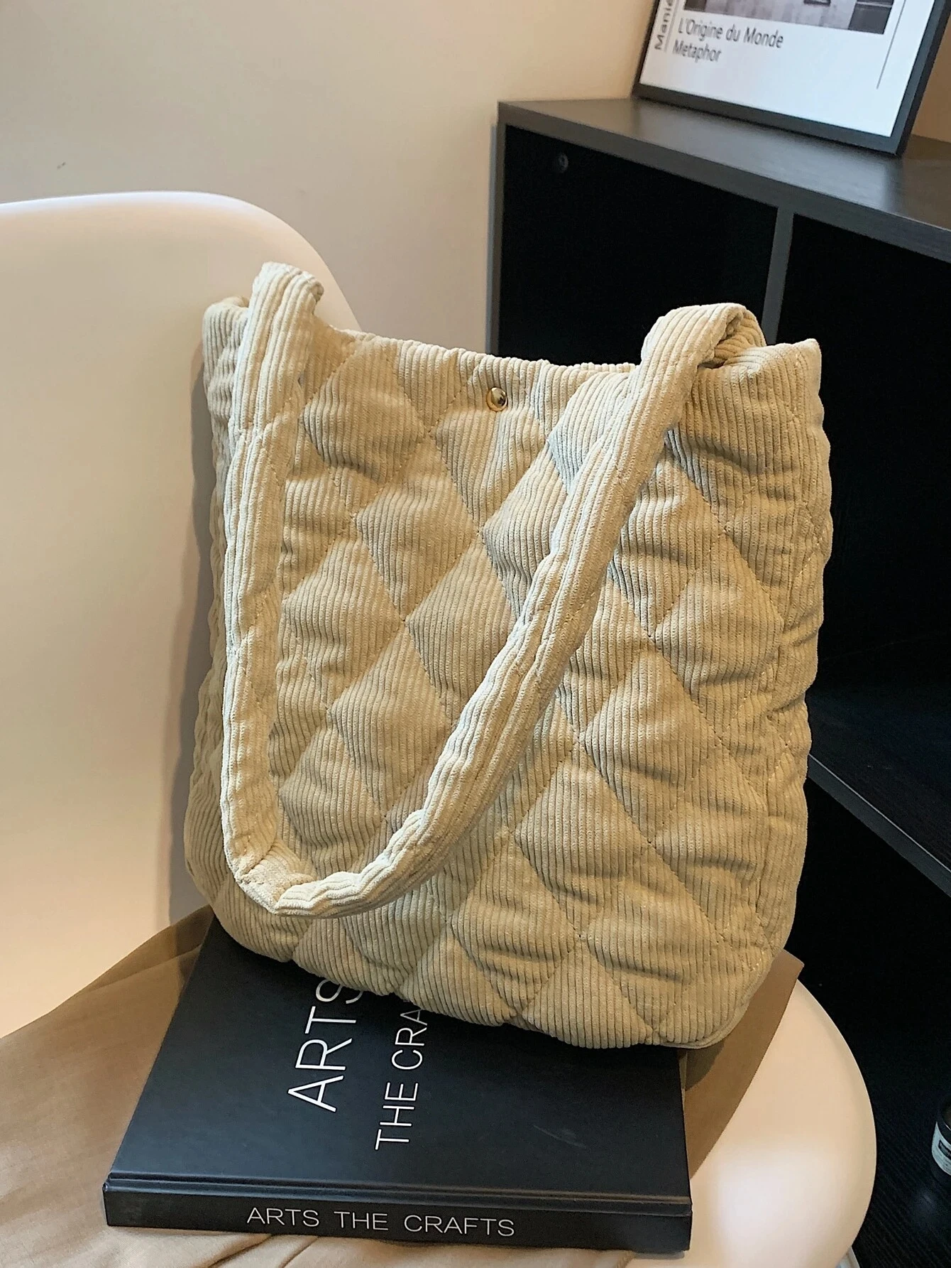 High Quality Custom Corduroy Girls Ladies Women Quilted Letter Pattern Medium Size Shoulder Shopping Bag