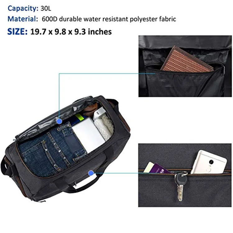 Water Resistant Travel Sports Duffel Gymbag With Shoe Compartment