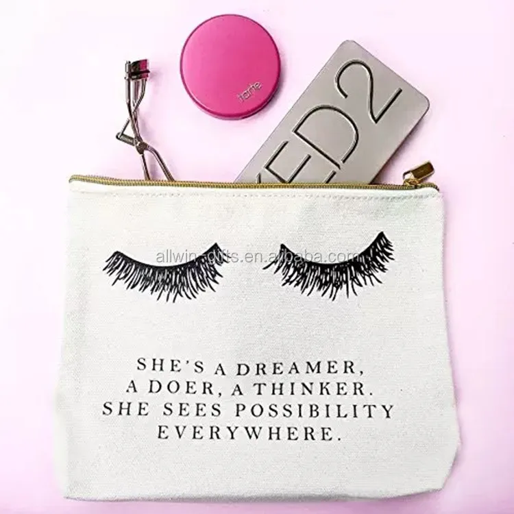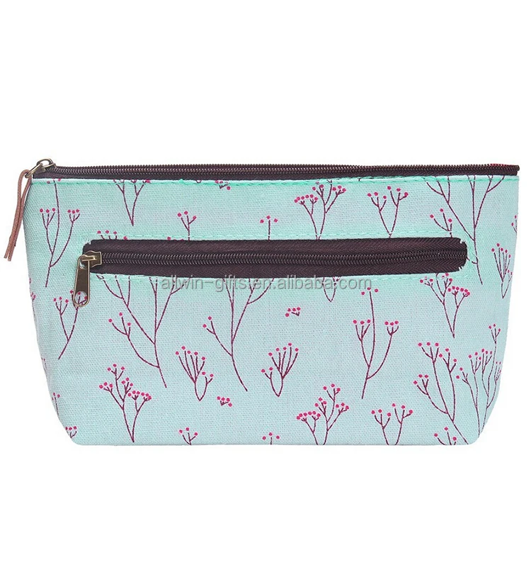 Custom printed small cotton canvas zipper pouch for cosmetic