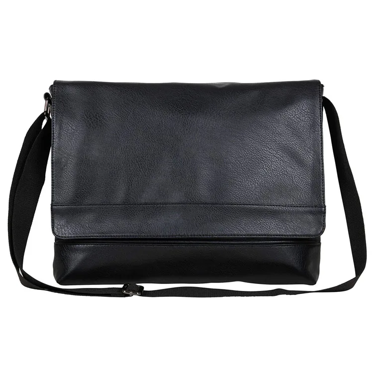 Custom Waterproof Black PU Leather Shoulder Crossbody Laptop Bag Messenger