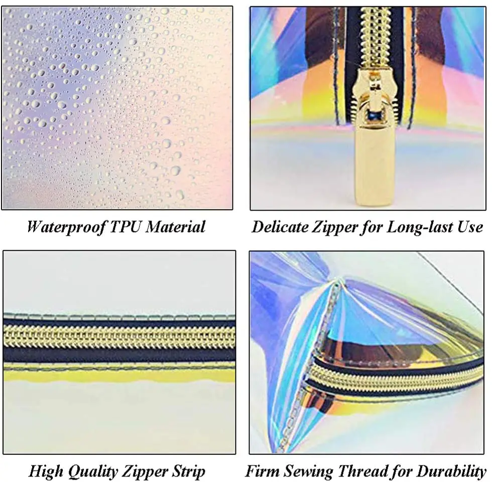 Fashion Women Laser Tpu Cosmetic Pouch Waterproof Holographic Makeup Bag
