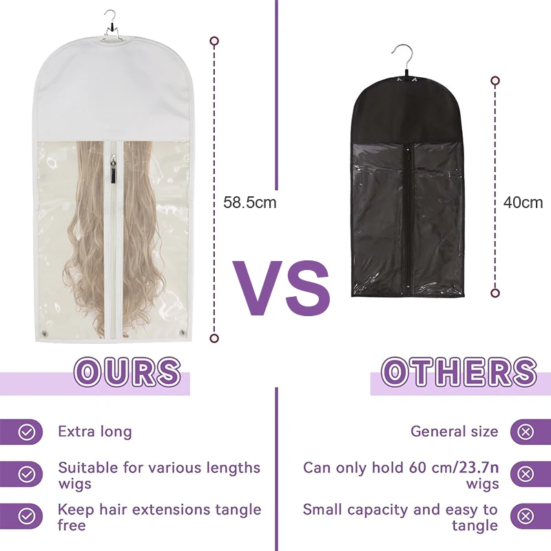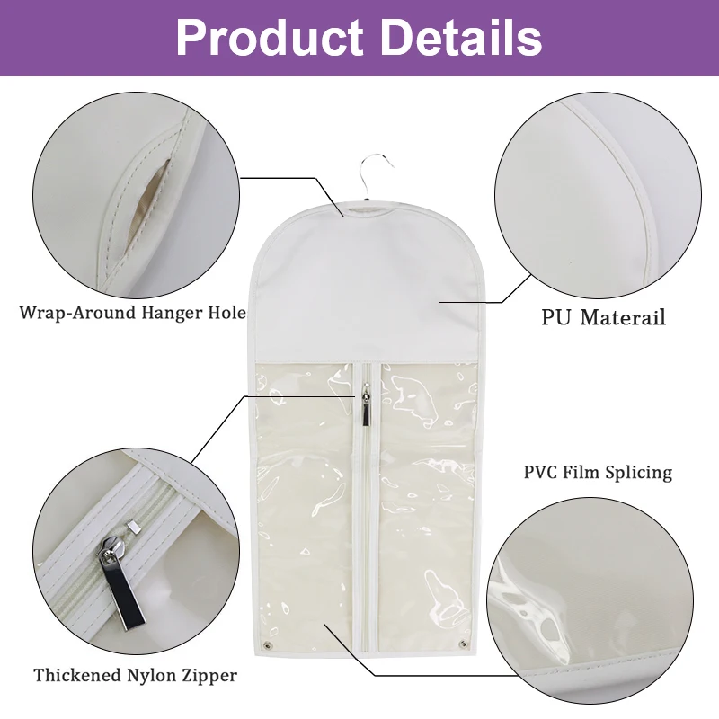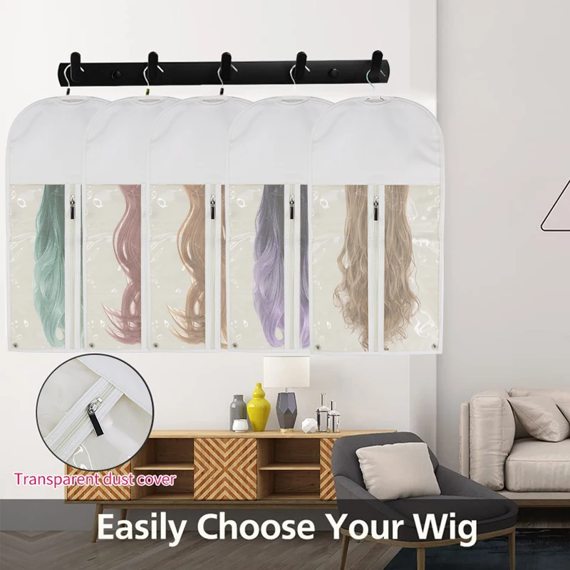 Luxury Custom Logo Clear PVC Window Human Hair Storage Packaging PU Wig Bag With Zipper and Hanger