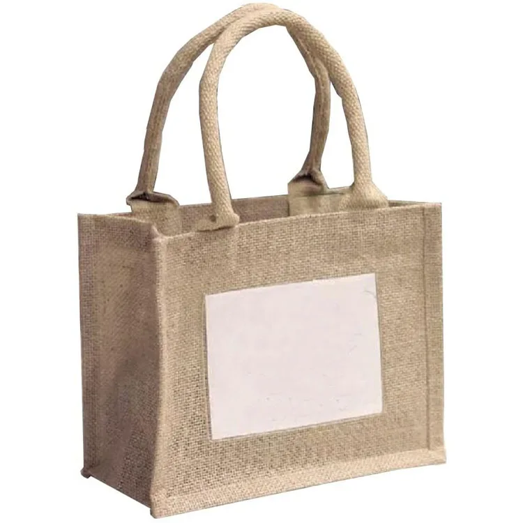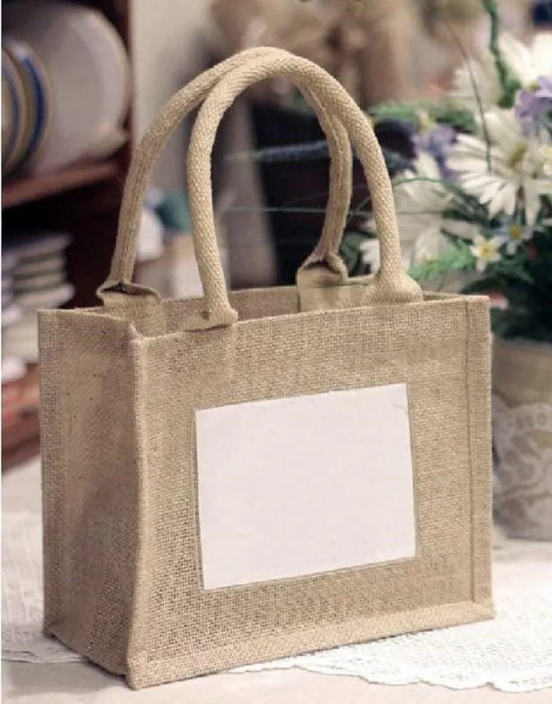 Custom logo burlap wedding totes mini jute tote with clear pvc window