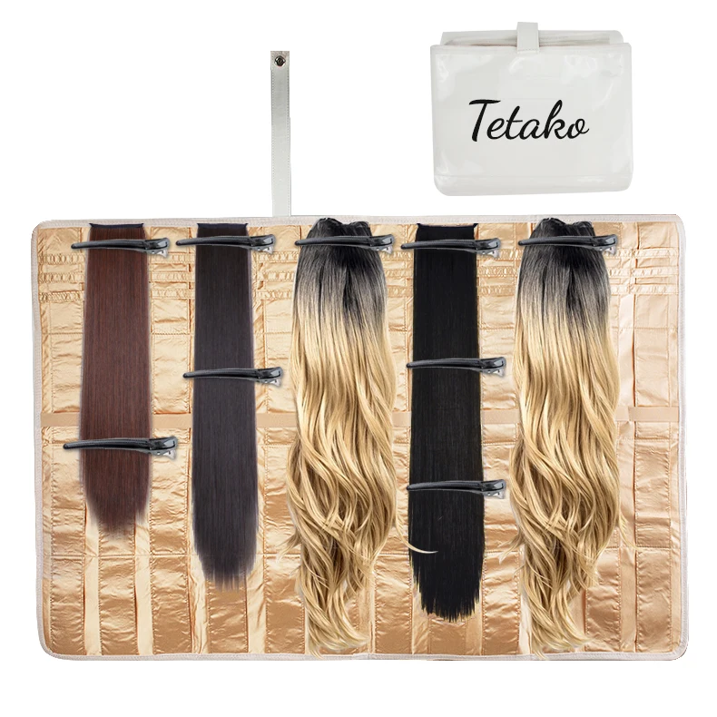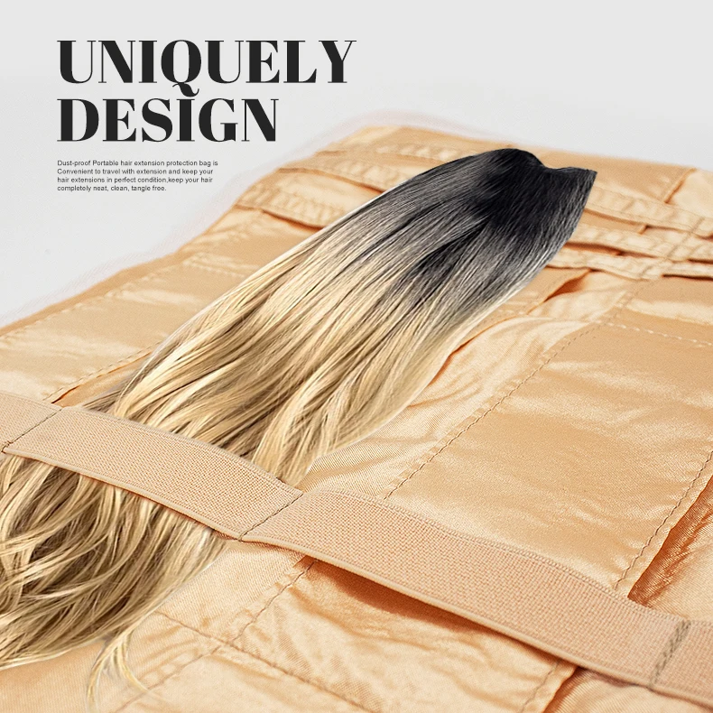 Wholesale Custom Travel Satin Silk Hair Extension Case Wig Storage Packaging Bag With Logo