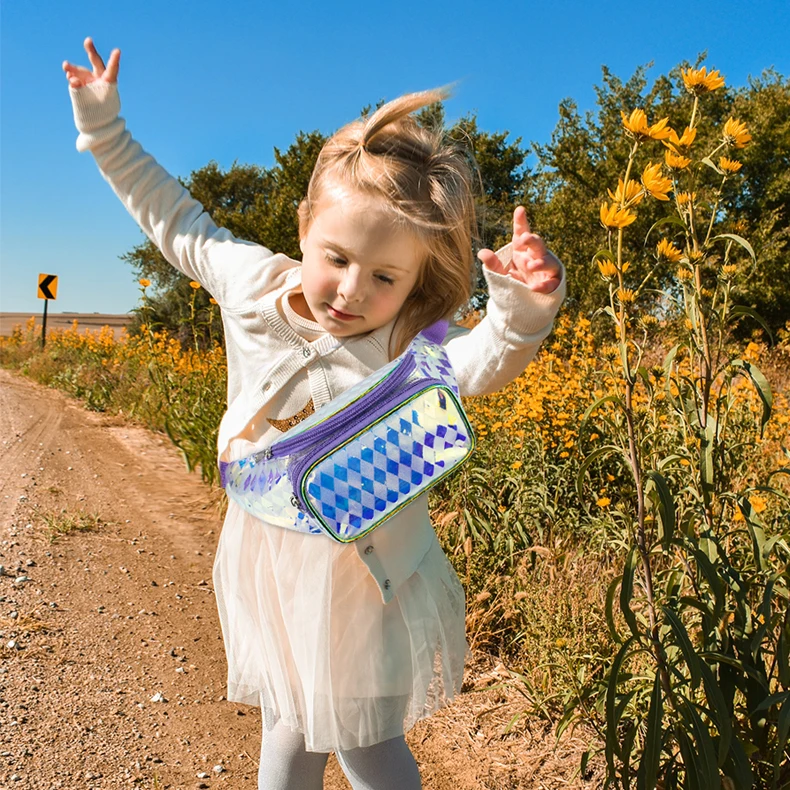 Custom Fashion waterproof Shiny PVC Simple Waist Belt Bag Fanny Pack Kids