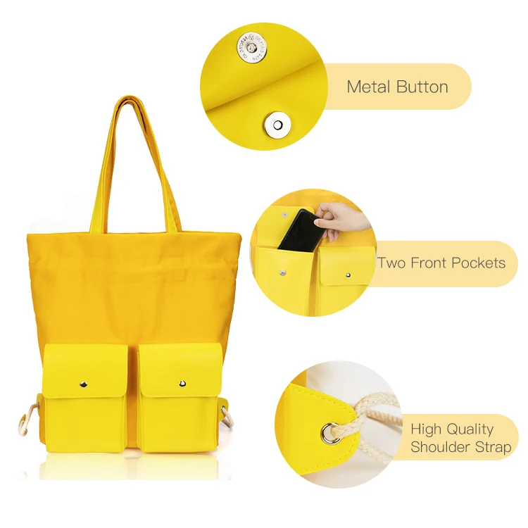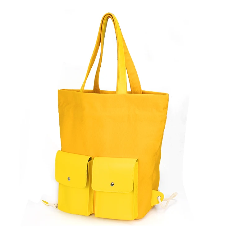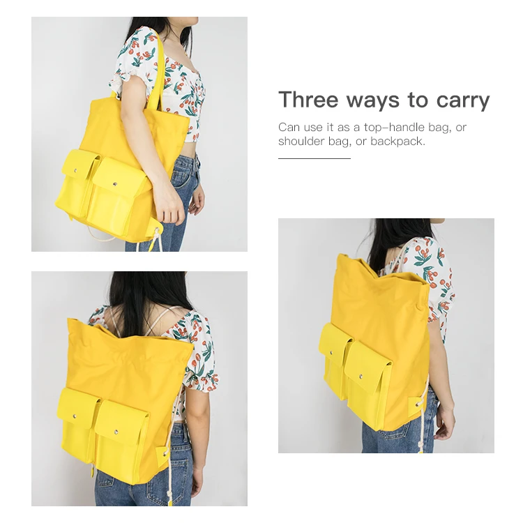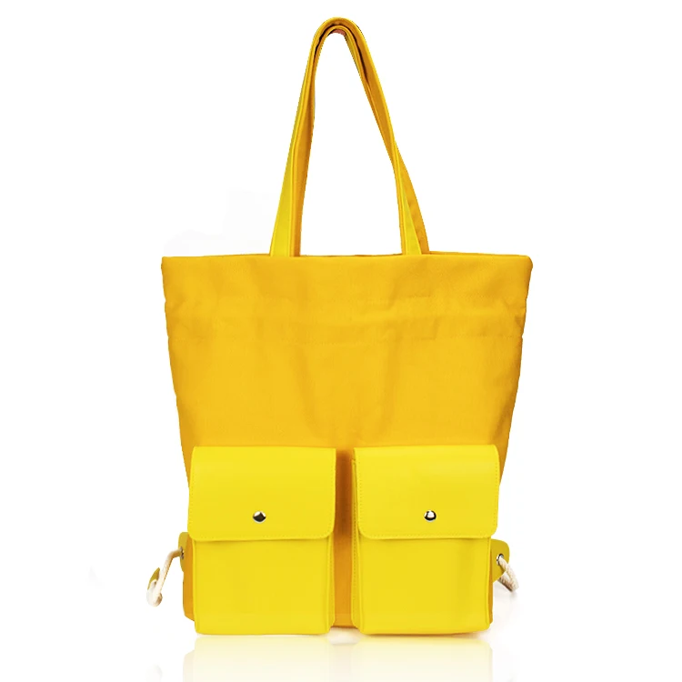 Custom Wholesale Large Korean Blank Drawstring Backpack Women Plain Canvas Tote Bag With Pockets