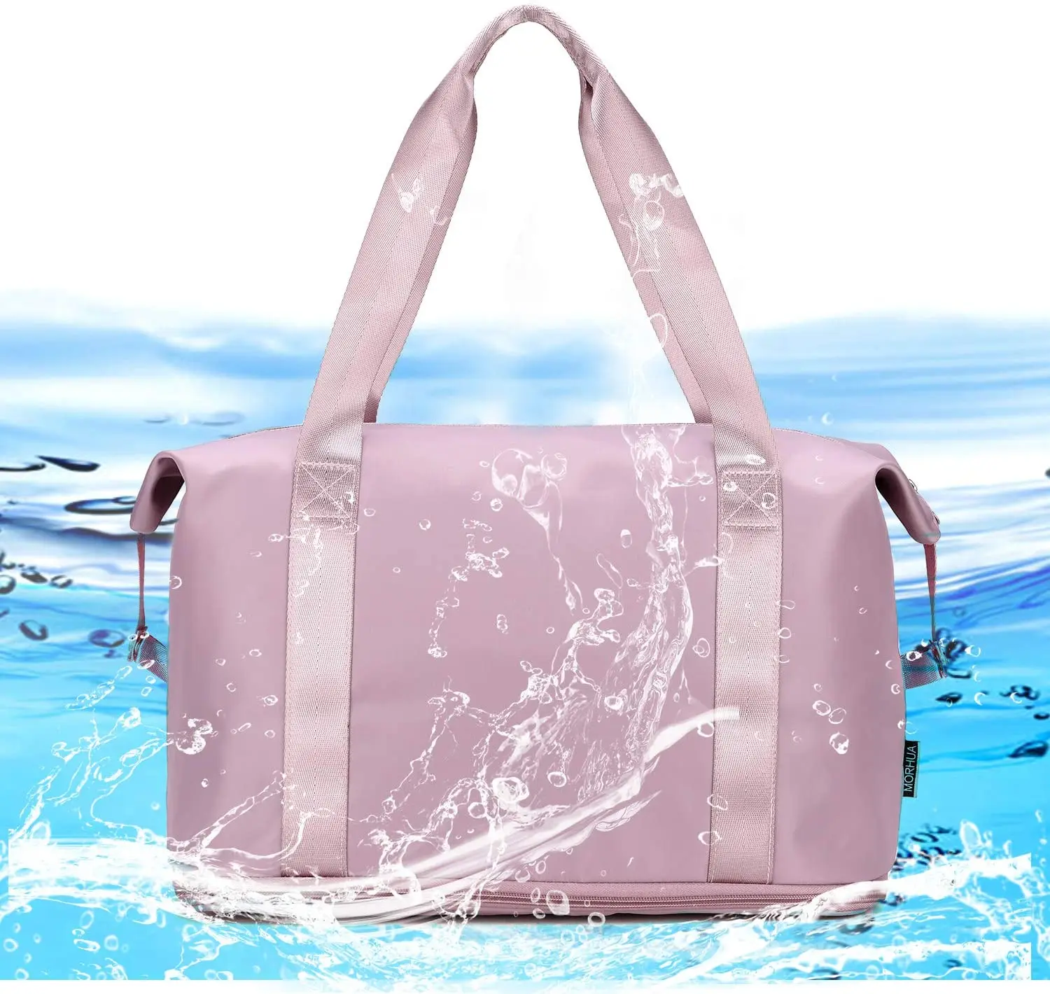 Pink Expandable Travel Duffel Bag Waterproof Sports Gym Tote Bag