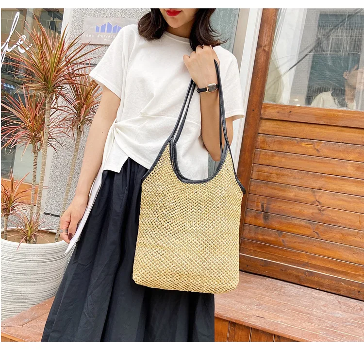 Women Fashion Hollow Shoulder Large Rattan Woven Beach Summer Straw Bags