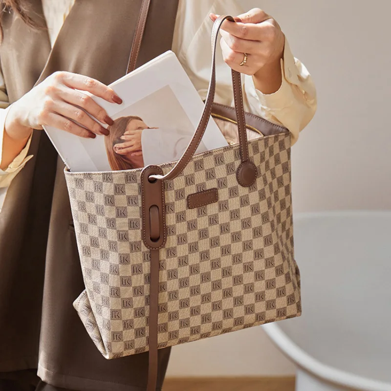 Designer Inspired Monogram Tote Bag for Women 2026 Spacious Work Bag Multi-way Crossbody Purse Vintage Chic