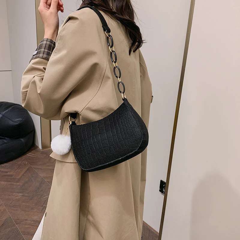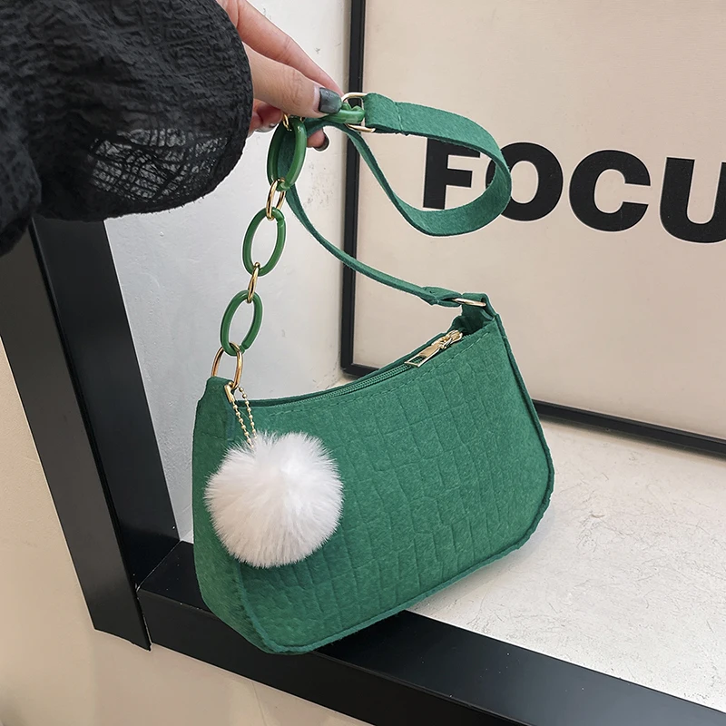 Hot Sale Shoulder Bag Women Fashion Casual Handbag Felt Underarm Messenger Bag Solid Color Mini Female Leather Chain Pouch