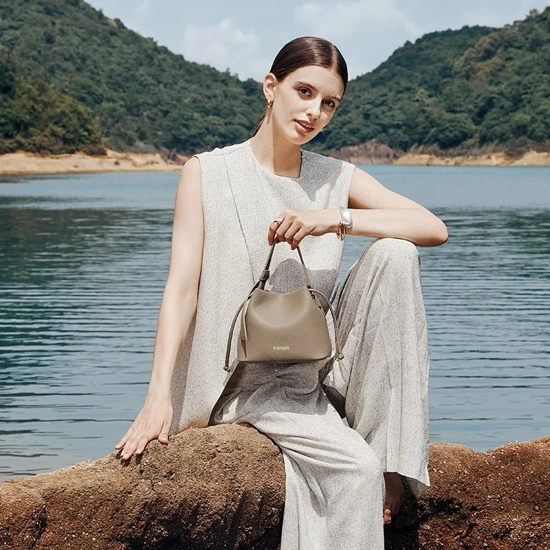 Customized fashion designer women's leather bucket handbag high-quality summer women's one-shoulder crossbody bag