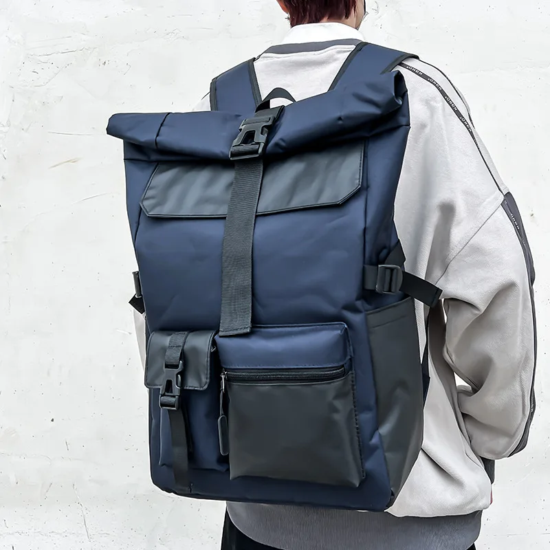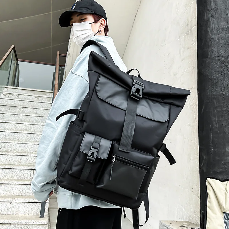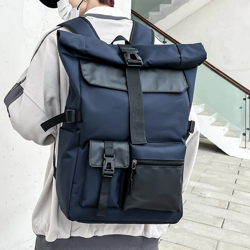 Men's Korean Style New Roll Top Casual Sports Backpack Trendy Waterproof Travel Laptop Backpack for Outdoor