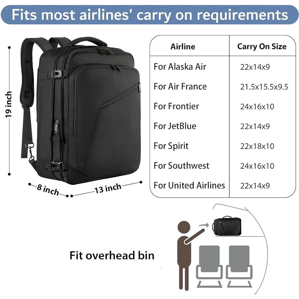 40L Water Resistant Lightweight Daypack Carry on Backpack Travel Backpack Airplane Approved Weekender Bag for Men and Women