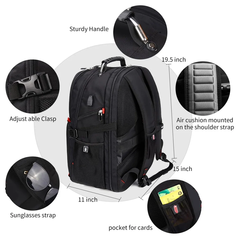 Extra Large 50L Fits 17 Inch Computer Travel College Laptop Backpack Business Bags with USB Charging Port for Men Women