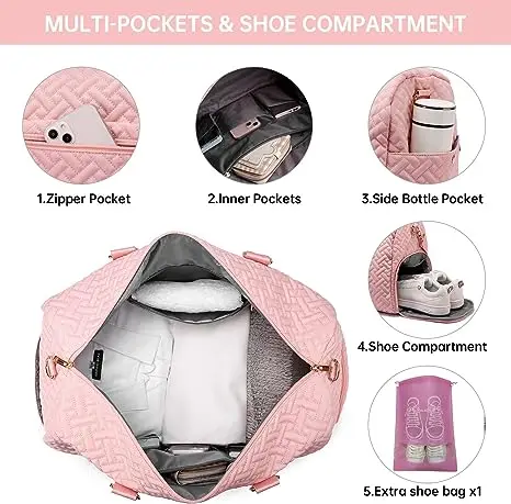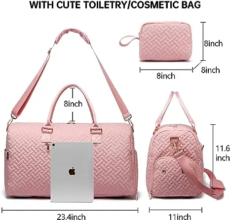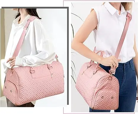 Travel Duffel Bag, Weekend Bag with Shoe Compartment, Women's Carry-On Overnight Bag with Wash Bag, Gym Bag with Wet Bag