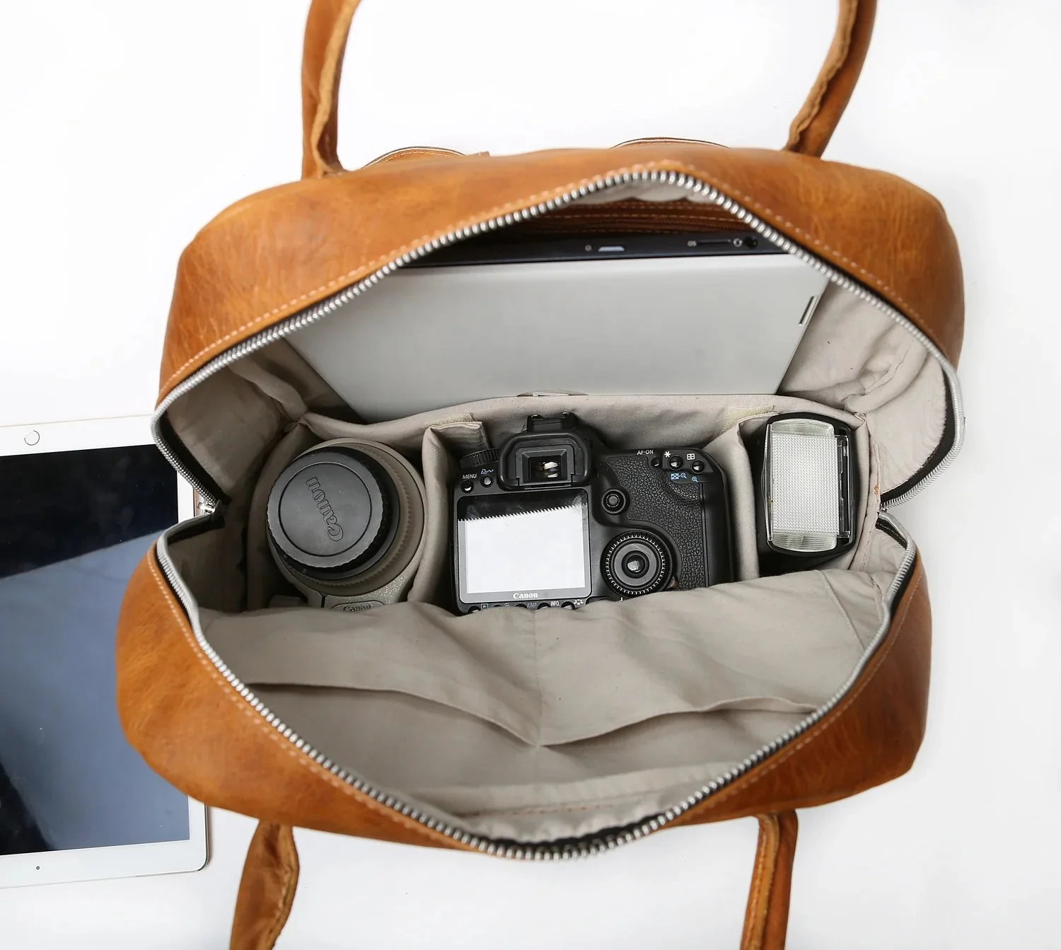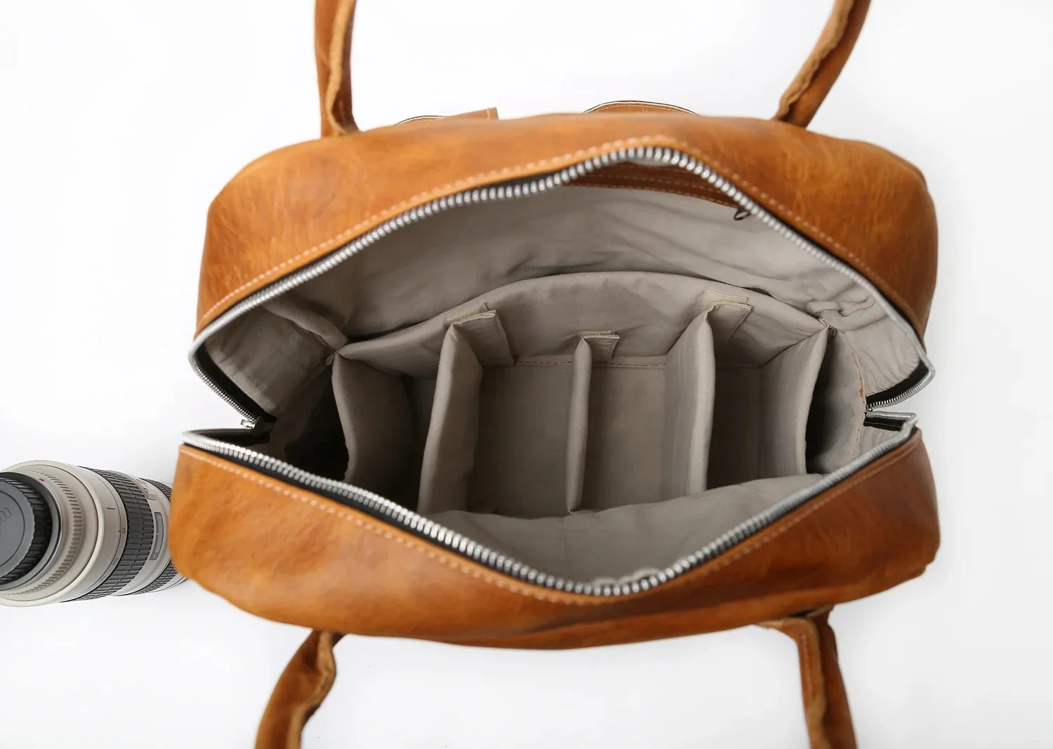 Camera Bags for Photographers Leather with Thicker Backpack Straps and Side Pockets