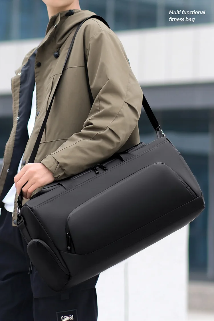 Custom Logo Men's Gym Bags Waterproof Sport Duffle Bag with Shoes for Outdoor Travel Casual PU Polyester Lined Fitness Luggage
