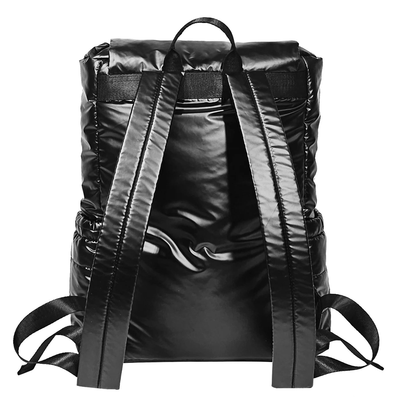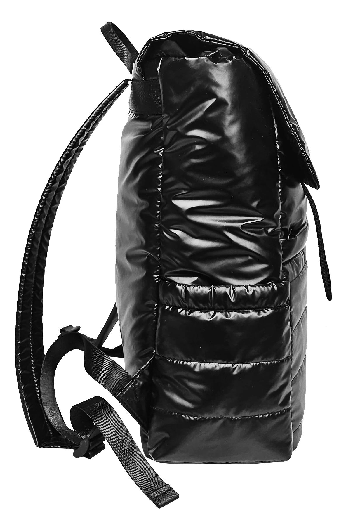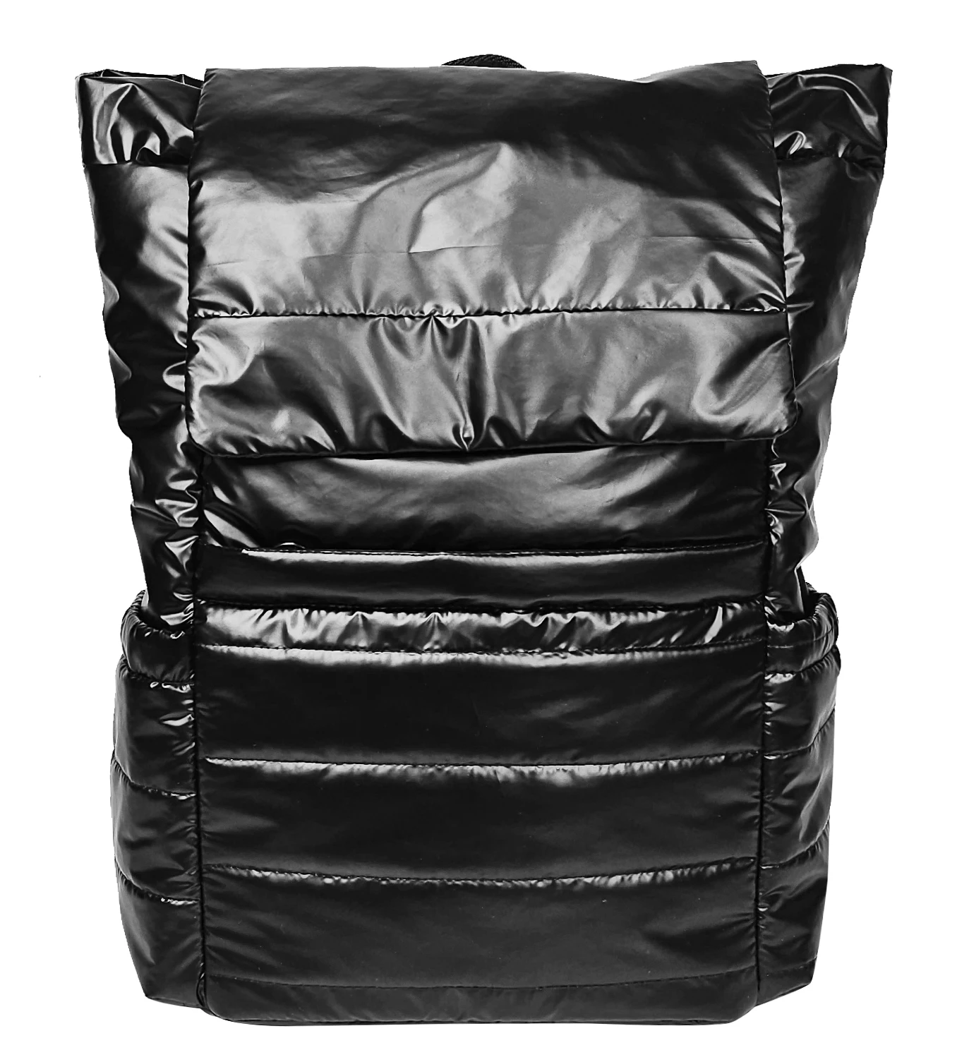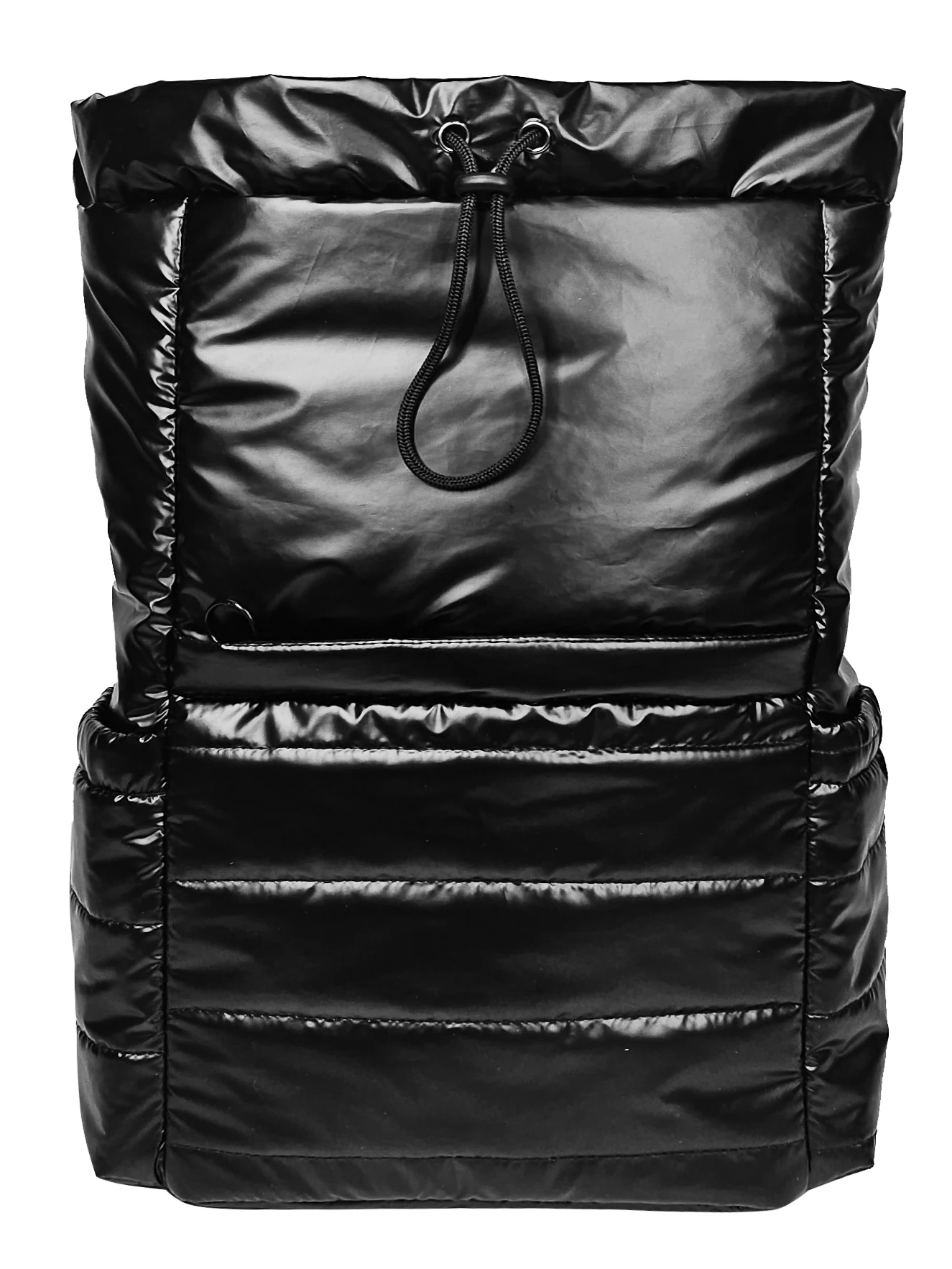 Black Puffy Polyester Backpack, Drawstring Opening, Side Pockets & Organized Interior for Daily Use