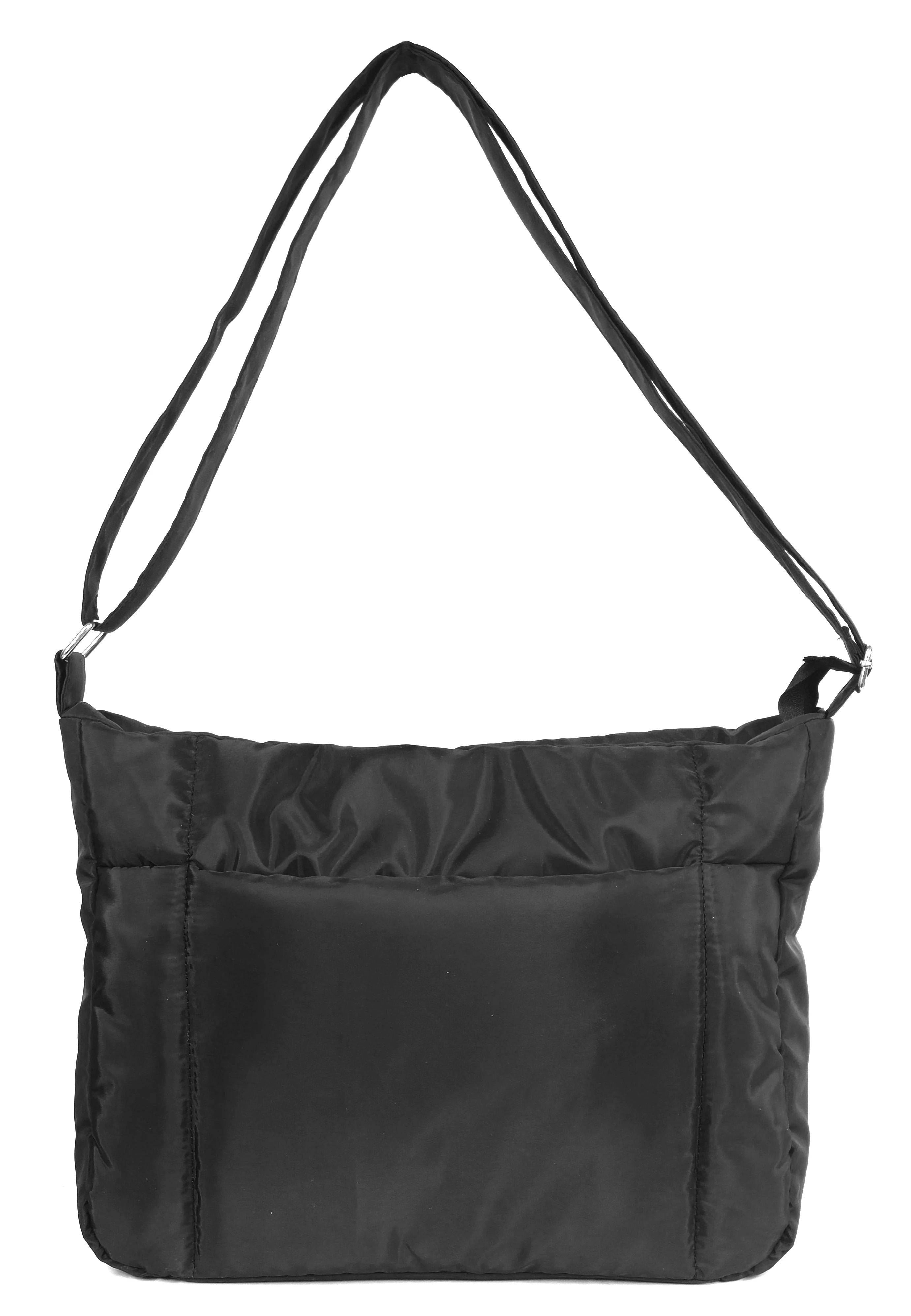 Black Memory Cloth Tote Bag for Women, Adjustable Strap, Front Pocket & Inner Zipper Pocket