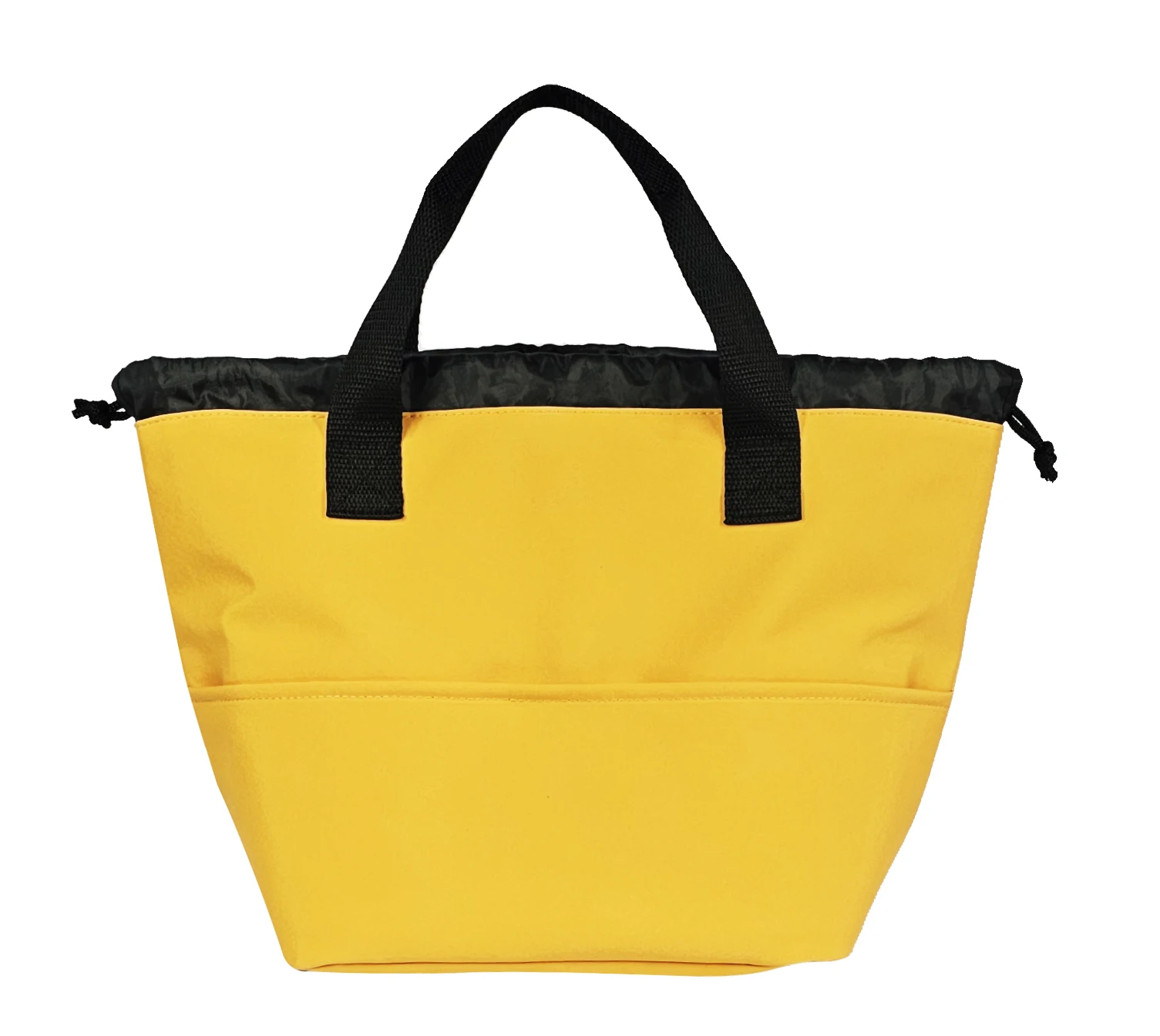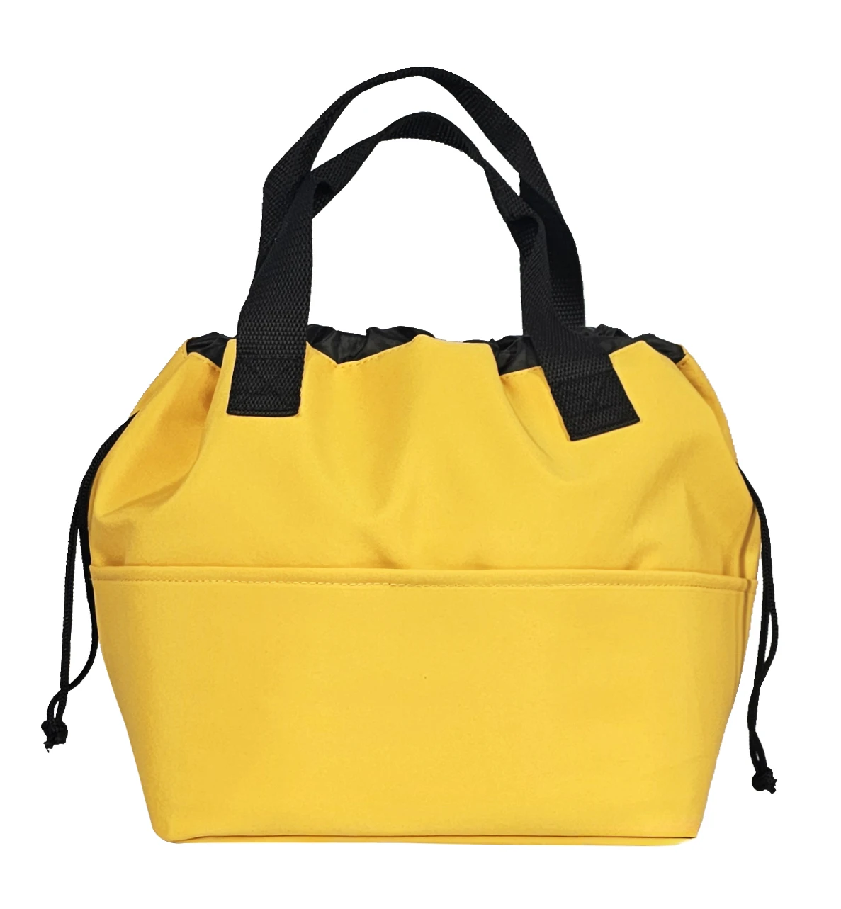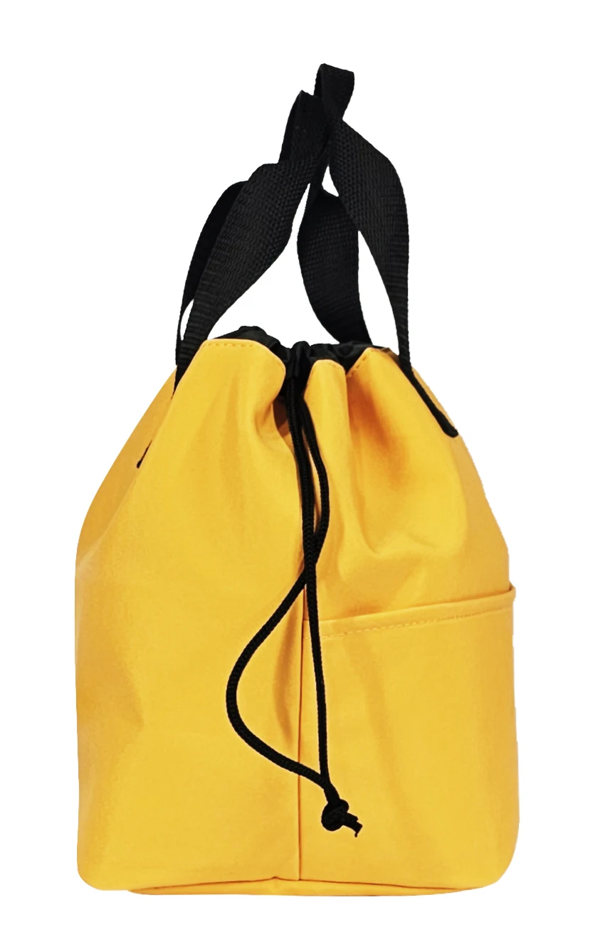 Insulated Lunch Cooler Bag, Reusable Yellow Tote with Drawstring Closure & Side Pocket, Leakproof Thermal Food Container