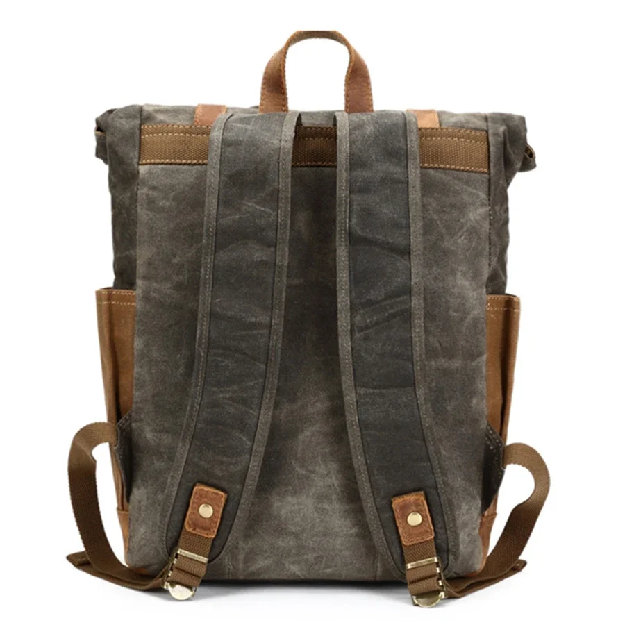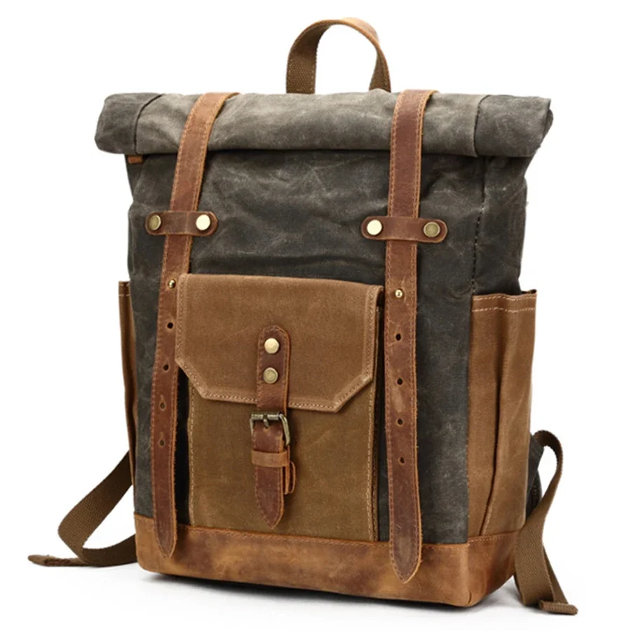 In Stocks Waxed Canvas Rolltop Rucksack Backpack Men Roll Top Laptop Backpack