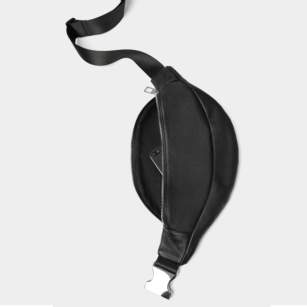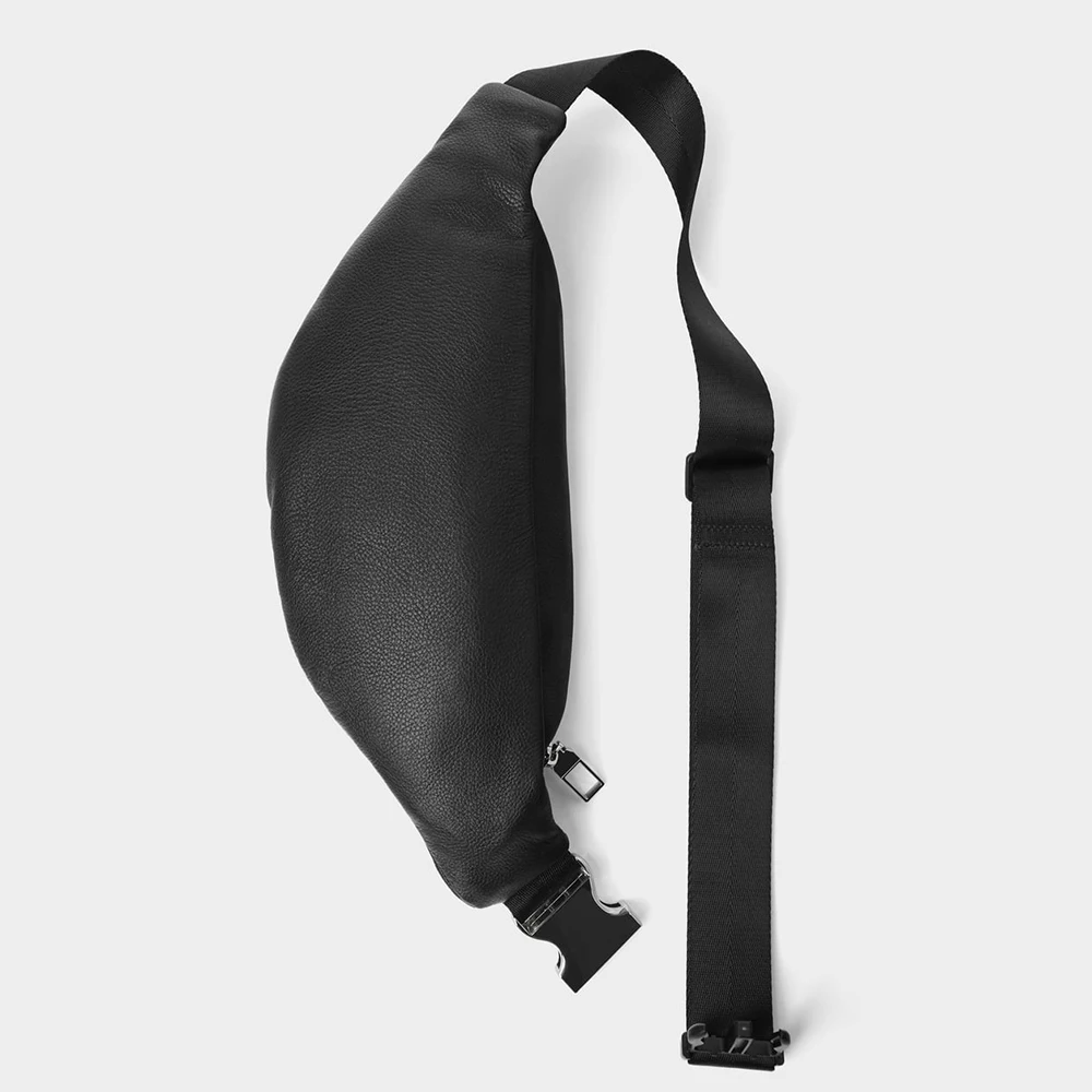 Custom Logo Soft PU Leather Black Men's Fashion Bum Waist Belt Bag Fanny Pack for Men