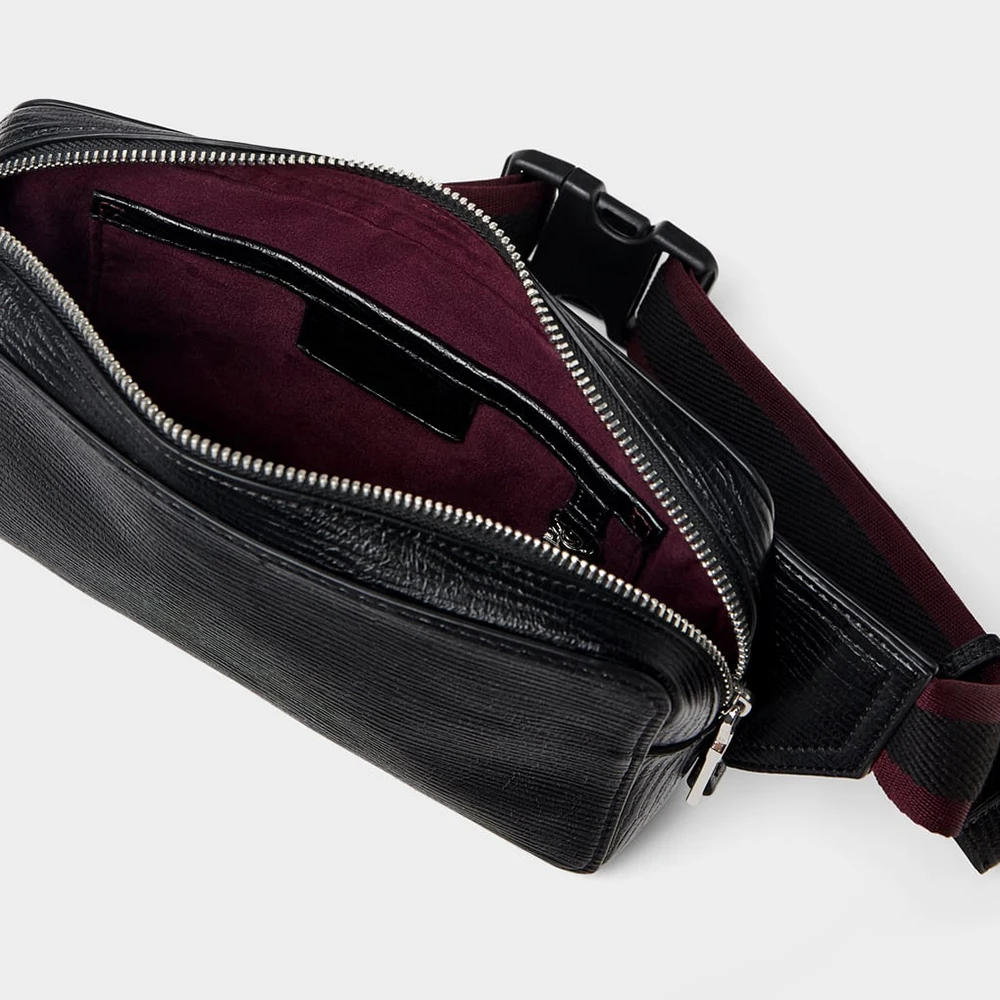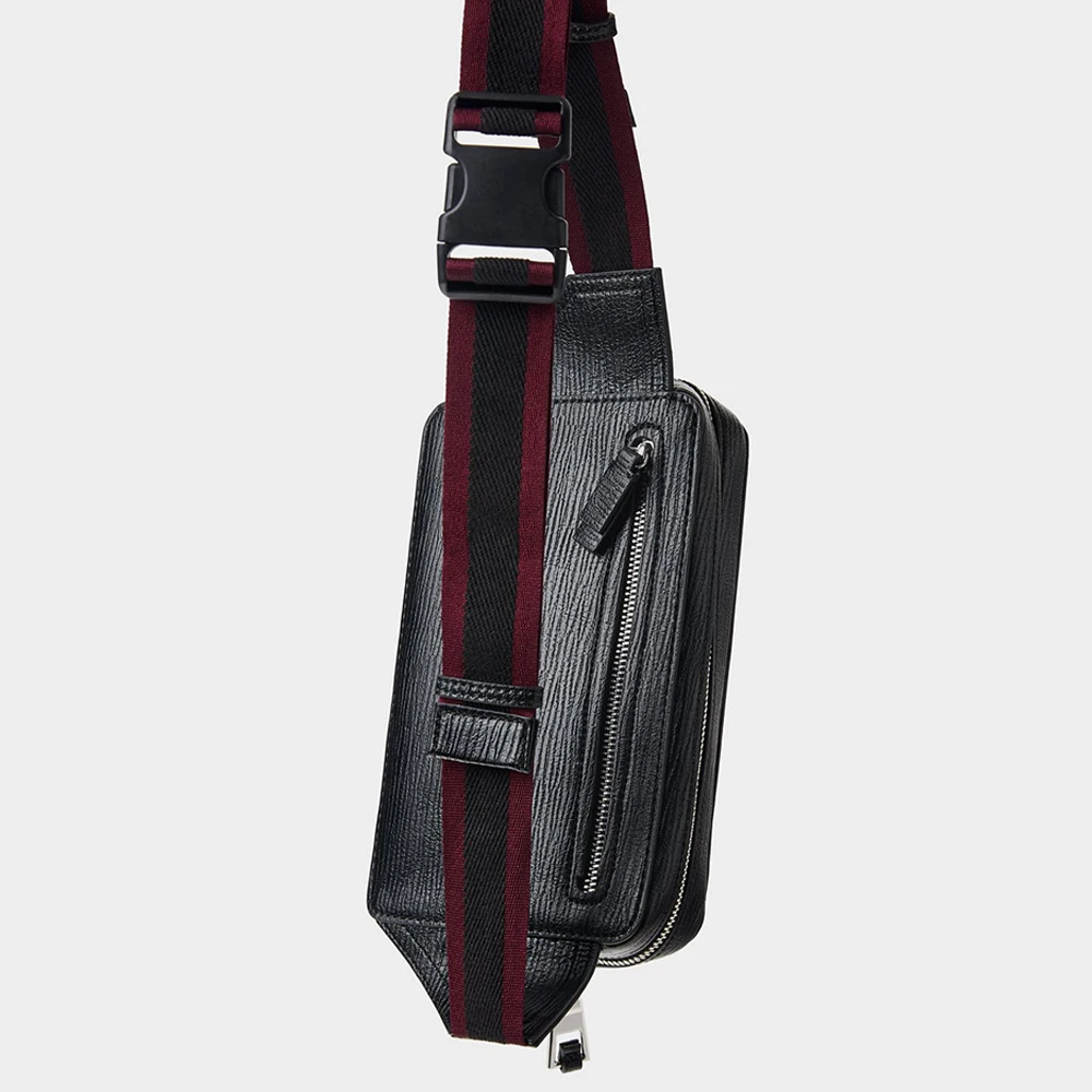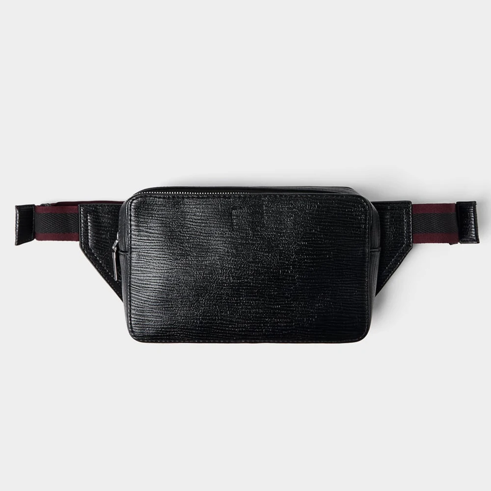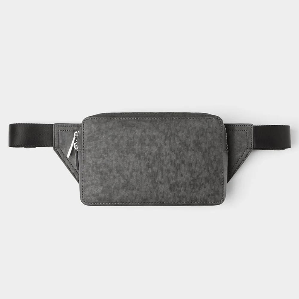 Custom Vegan Textured Leather Black Fanny Pack Pouch Zipeer Belt Waist Bag for Men