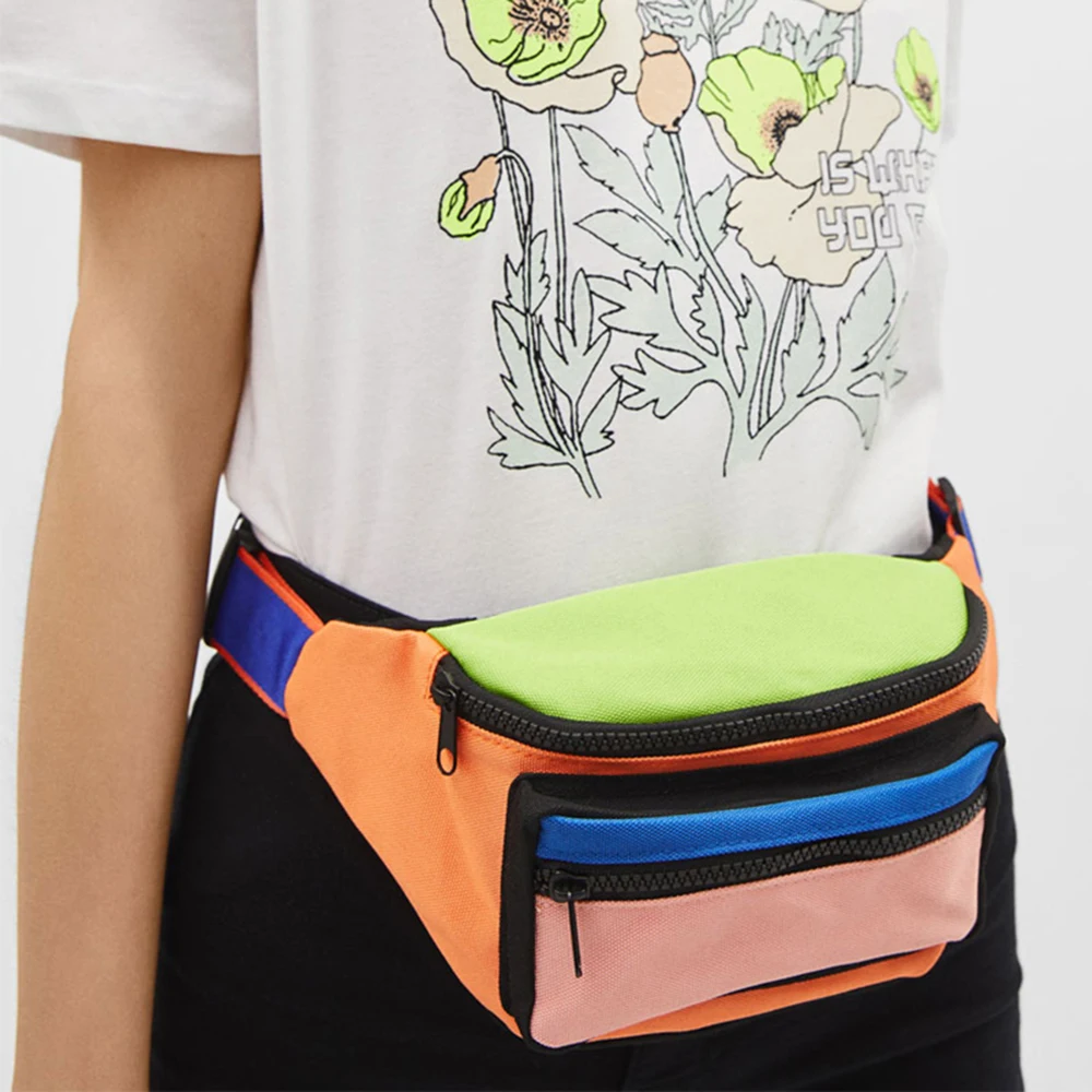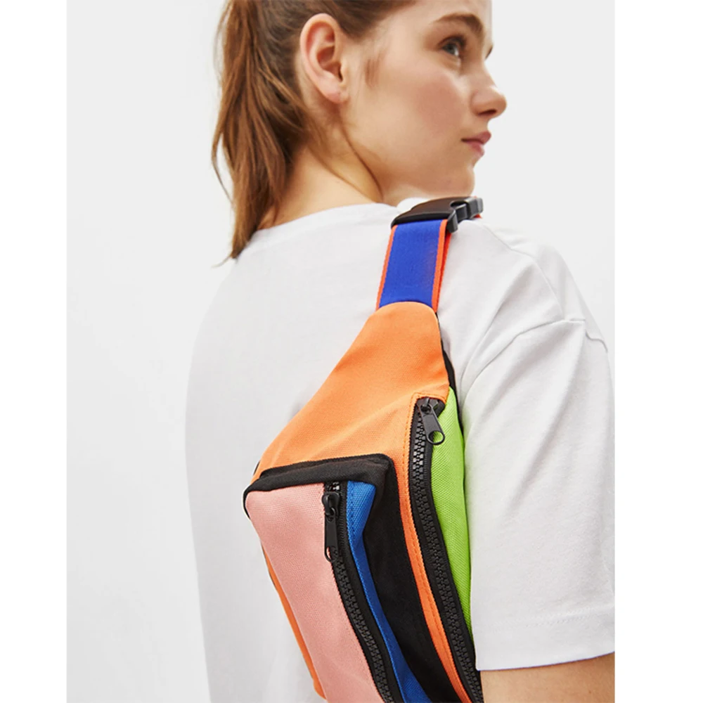 Custom Logo Color Block Canvas Women Waist Belt Bum Bag Fashion Ladies Fanny Pack Pouch