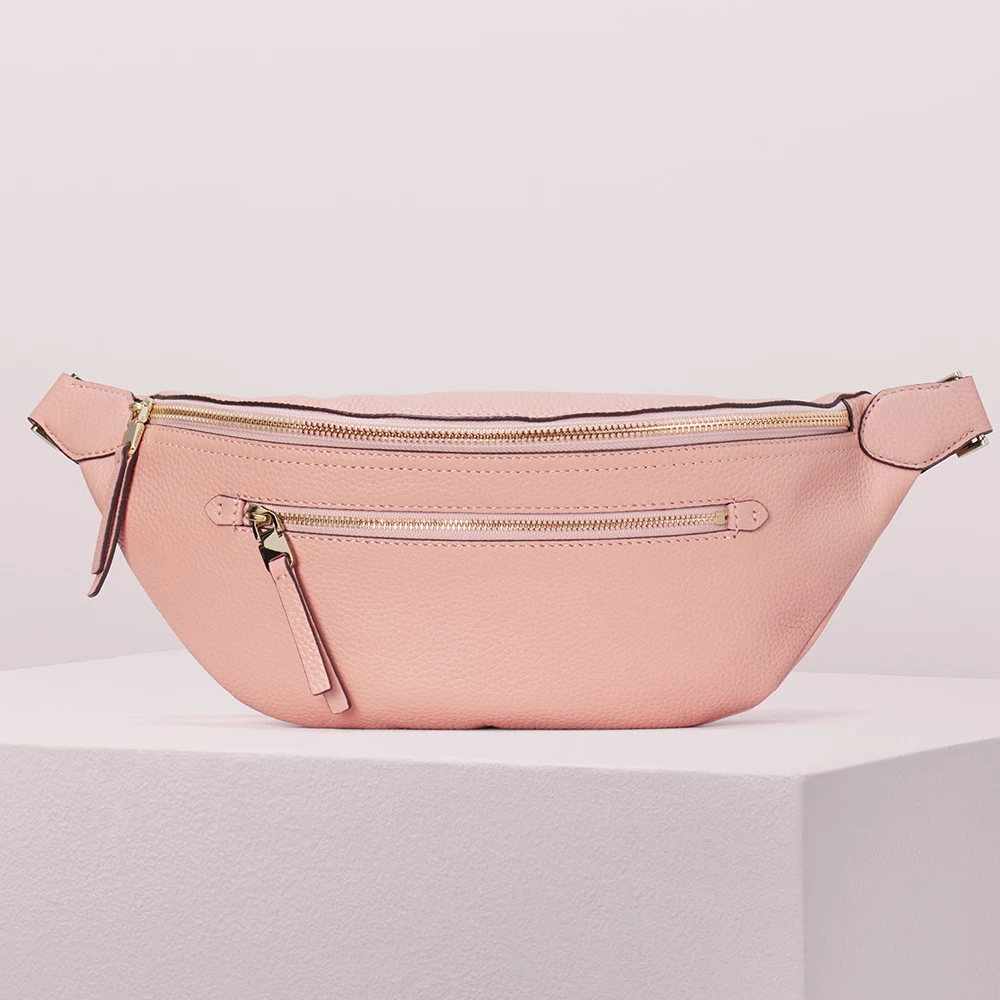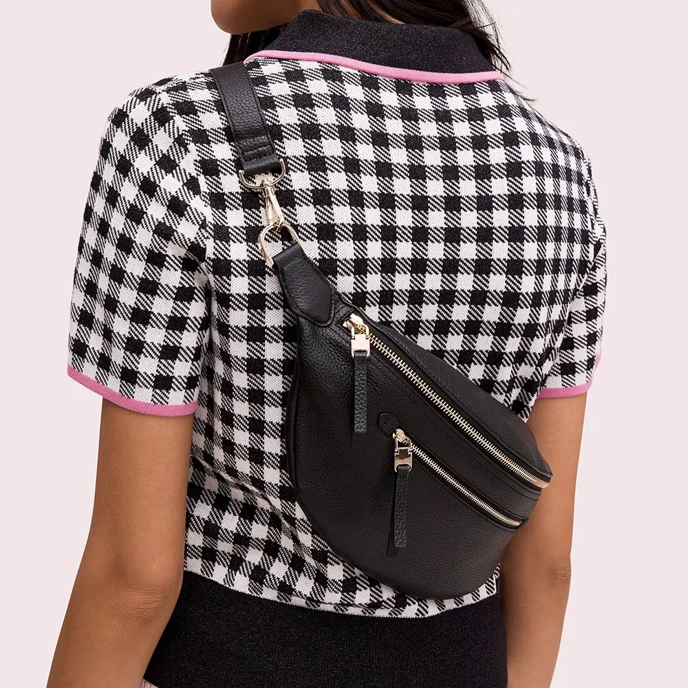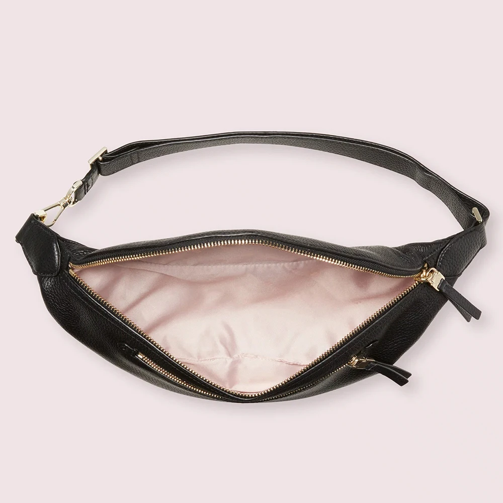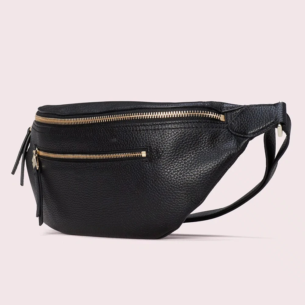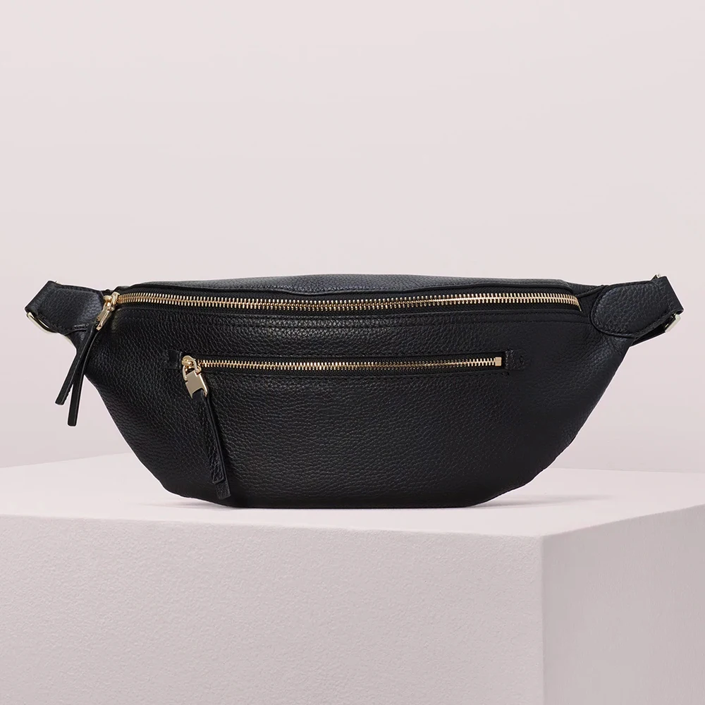 Custom Pebble Leather Black Women Large Crossbody Belt Waist Bag Ladies Money Fanny Pack