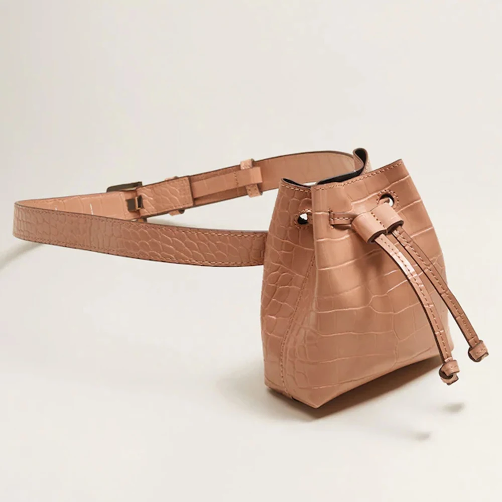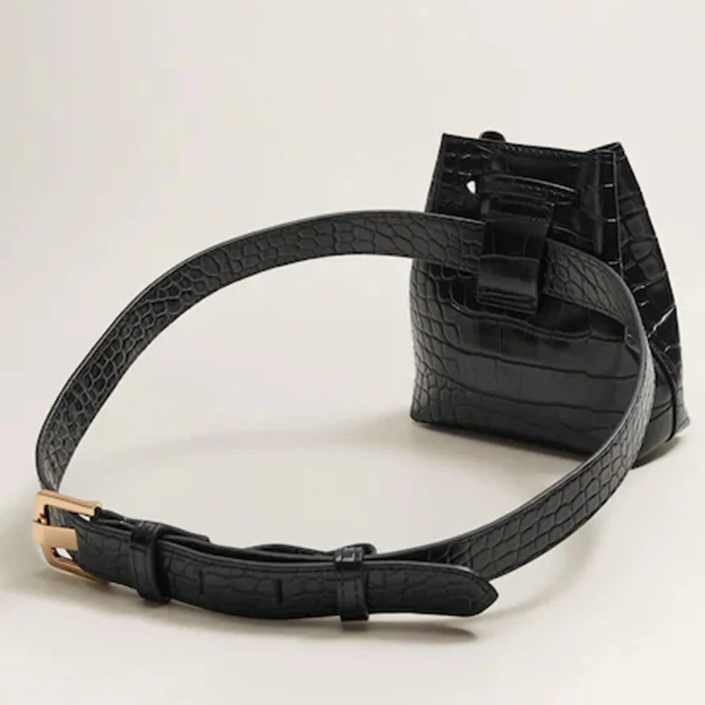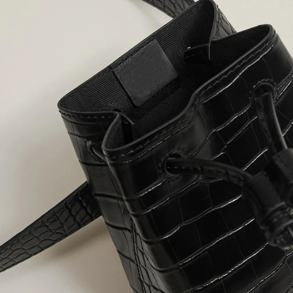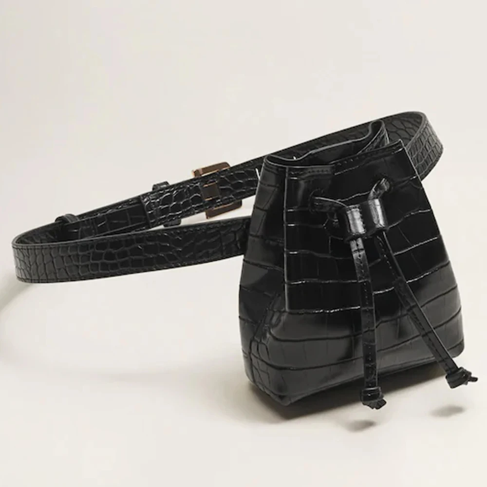 Custom Vegan Croc Leather Black Women Belt Purse Bucket Ladies Mini Waist Bag Fanny Pack