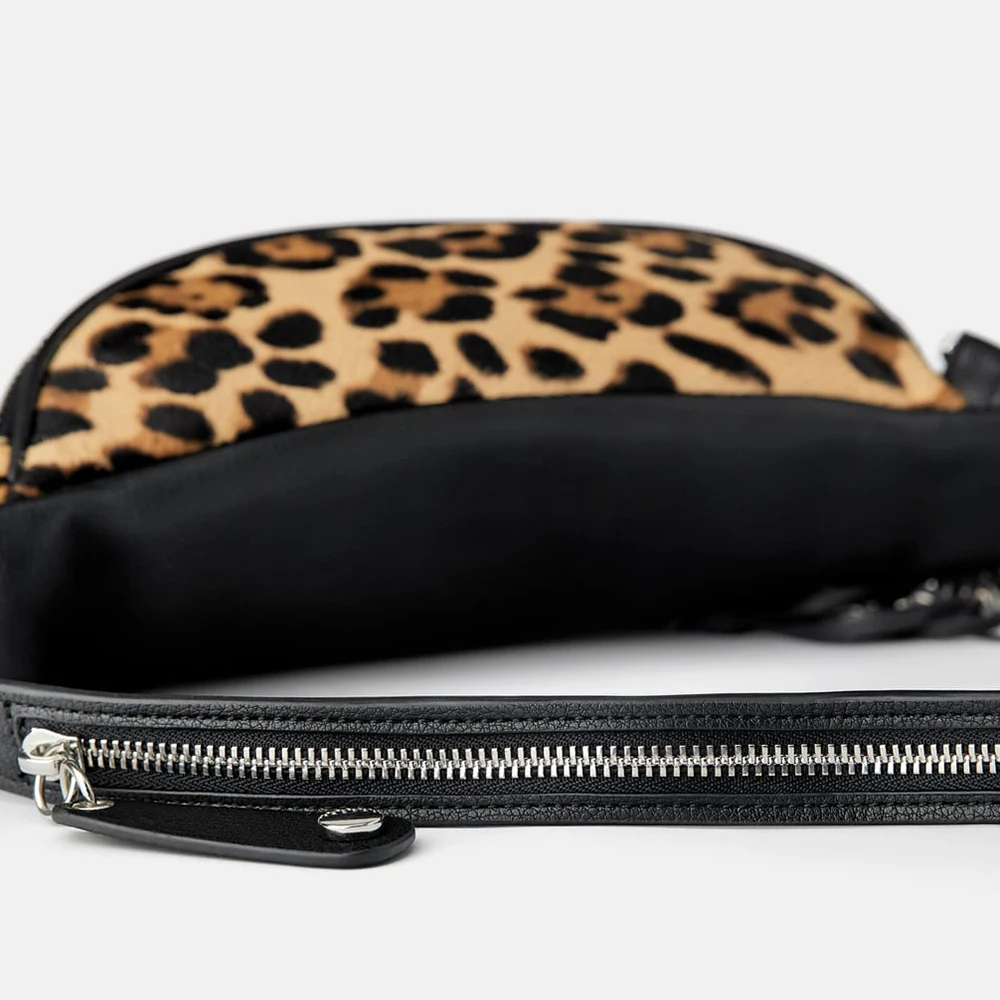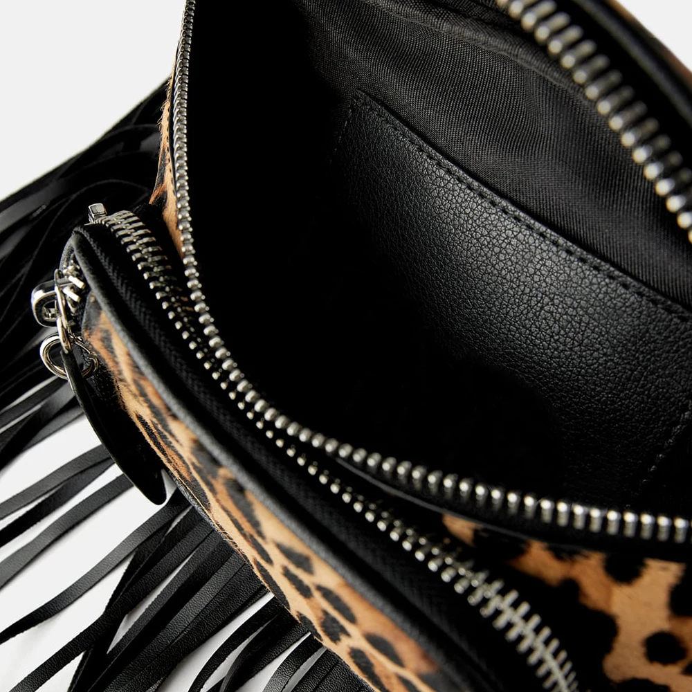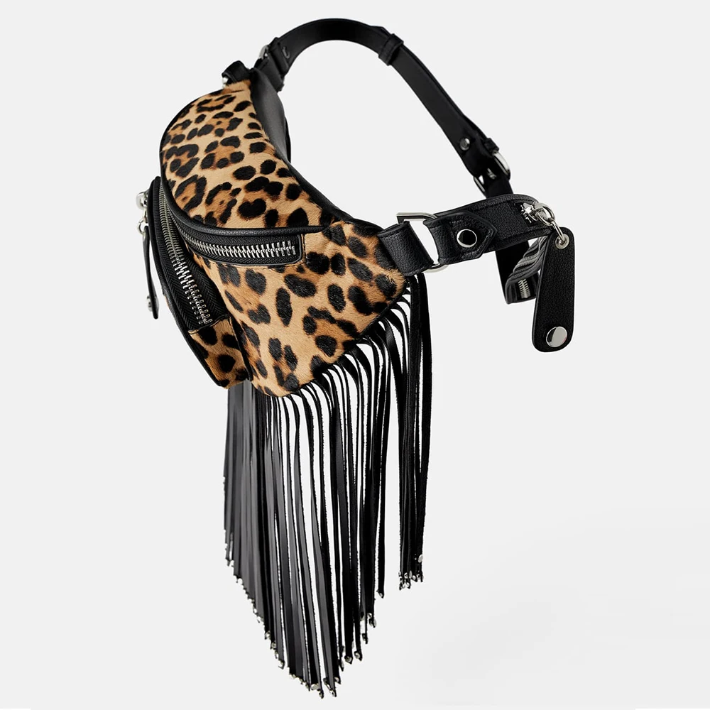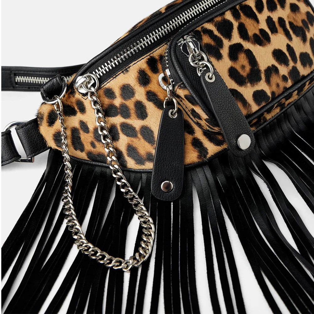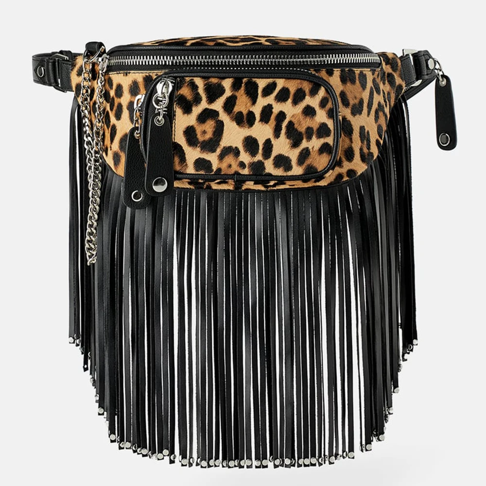Custom Logo PU Leather Leopard Printed Ladies Belt Waist Bag Fringe Crossbody Fanny Pack for Women