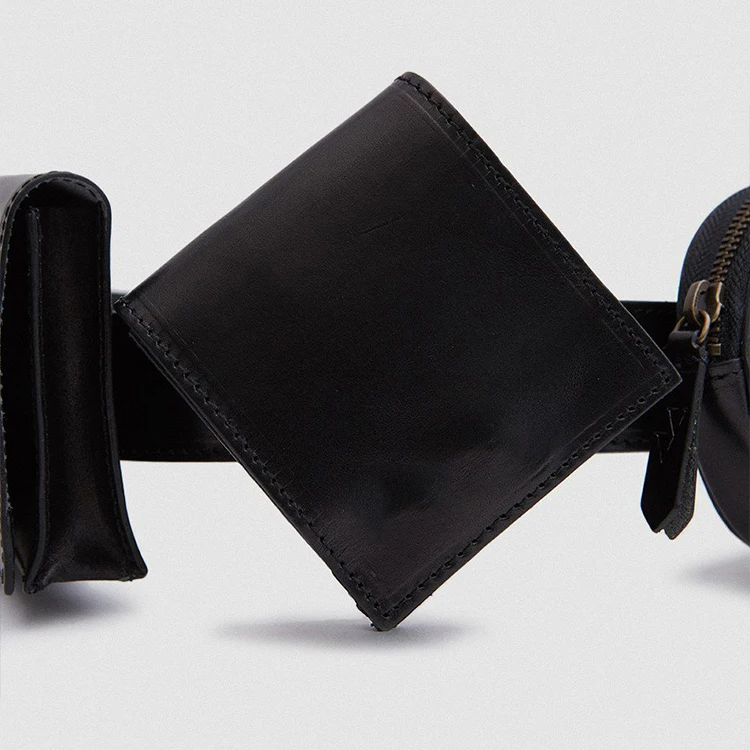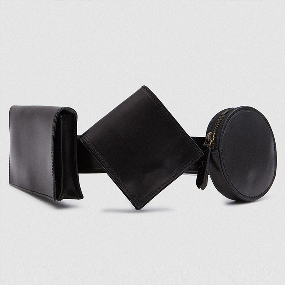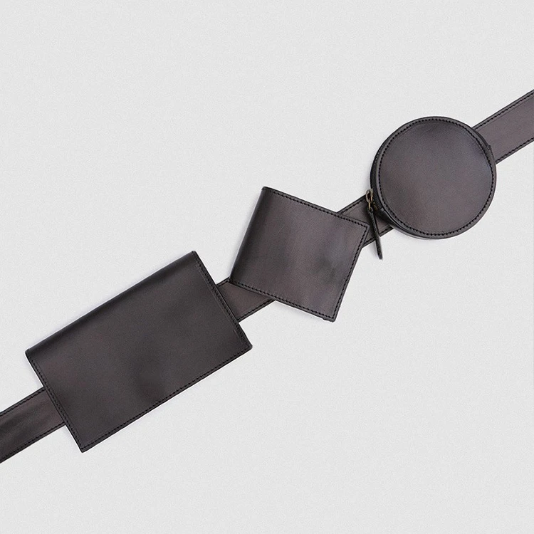 Custom Logo PU Smooth Leather Black 3 in 1 Belt Waist Bag Set for Women Fashion Fanny Pack