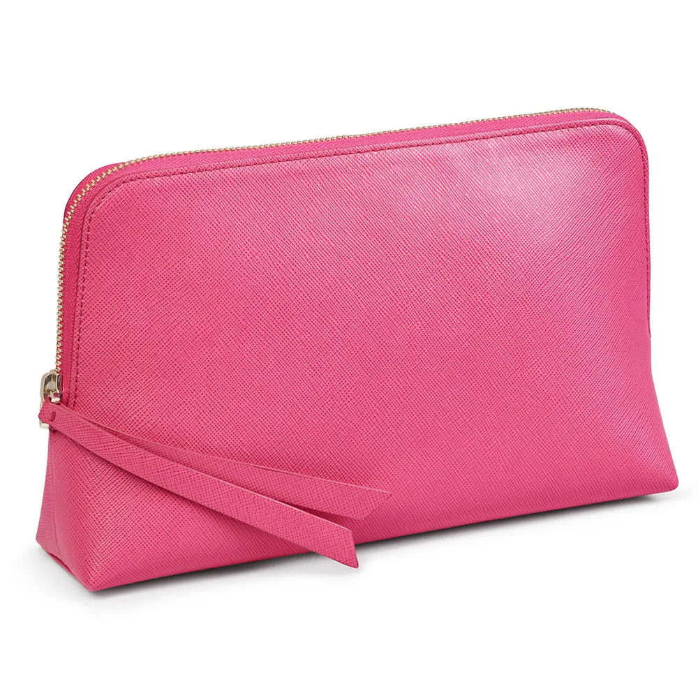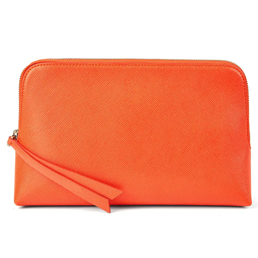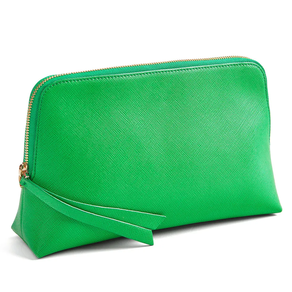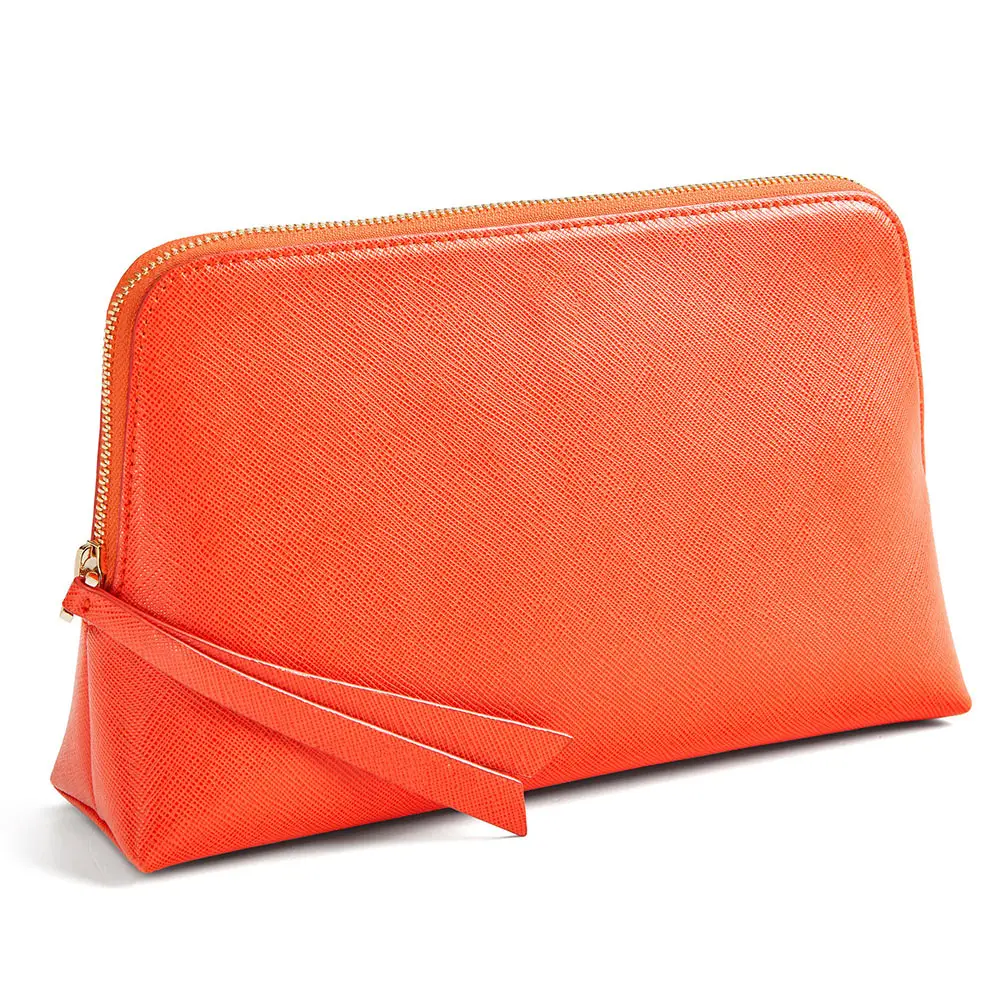 Custom Logo Saffiano Leather Ladies Makeup Bag Women Zipper Travel Cosmetic Case Pouch