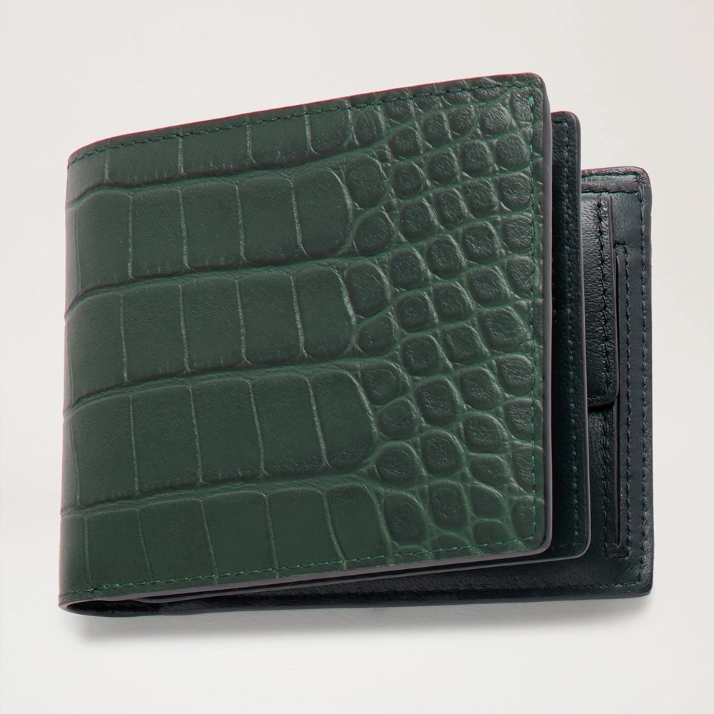 Custom Logo Genuine Real Leather Croc Green Men's Trifold Short Card Wallet Coin Purse for Men