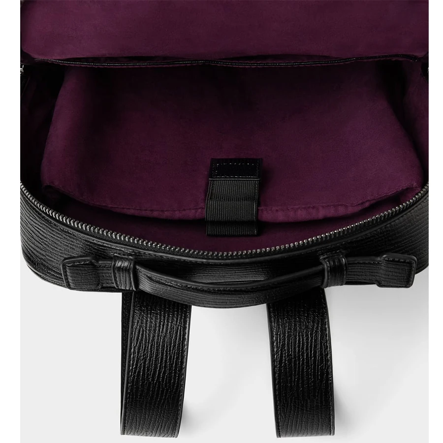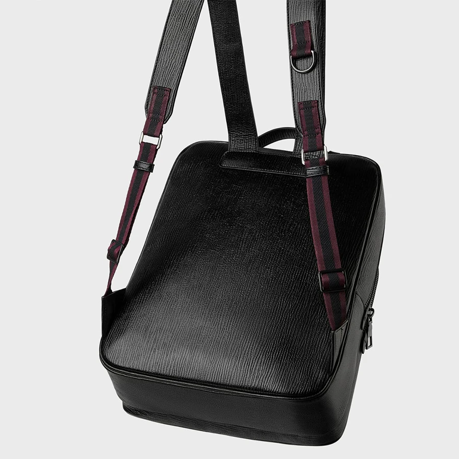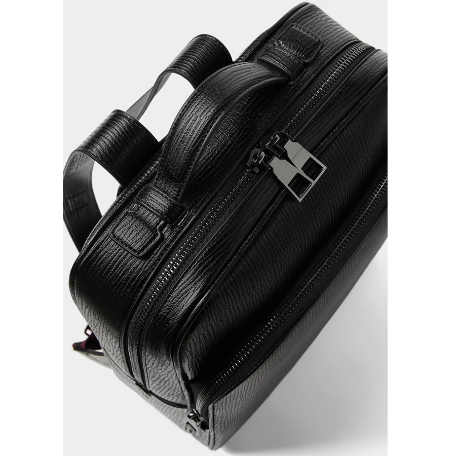 Custom Logo PU Textured Leather Mens Laptop Business Backpack Black School Bag Pack for Men
