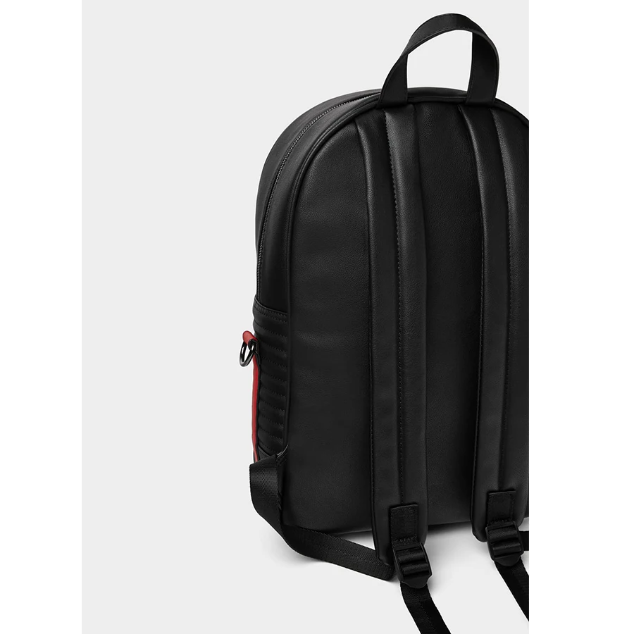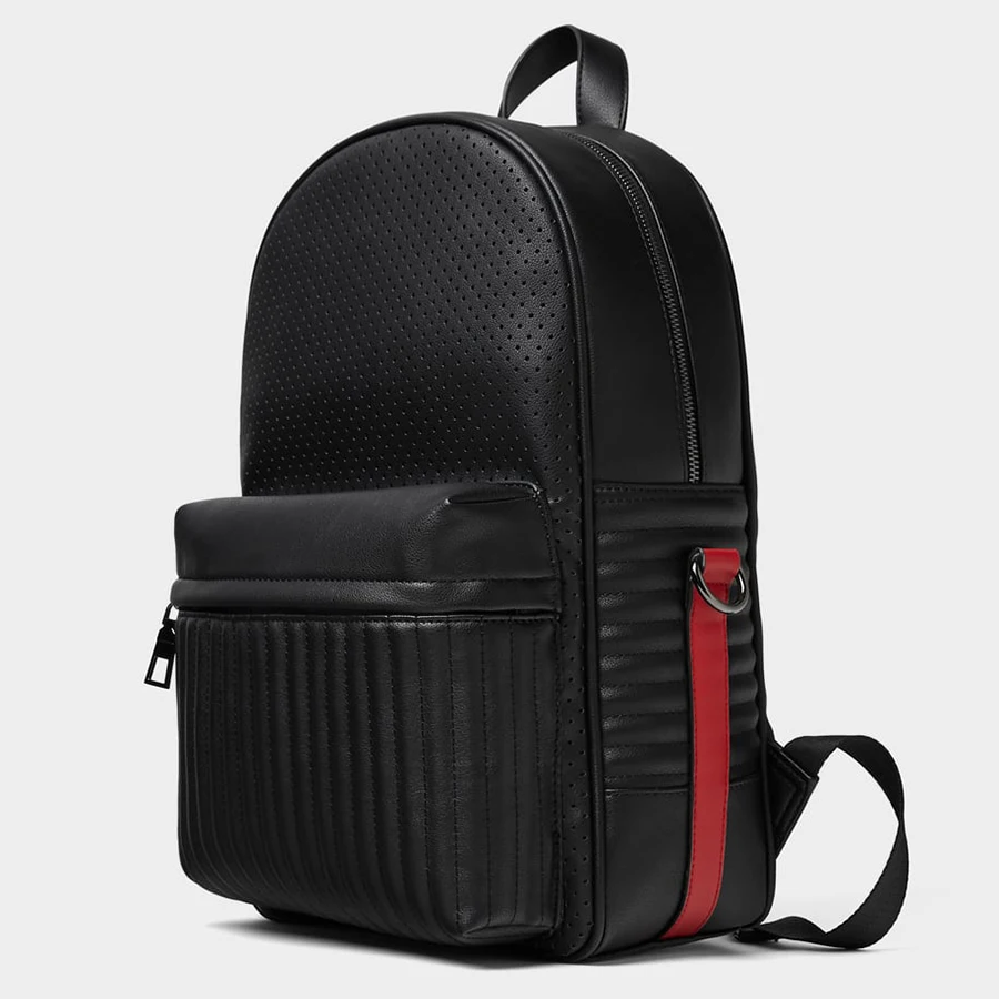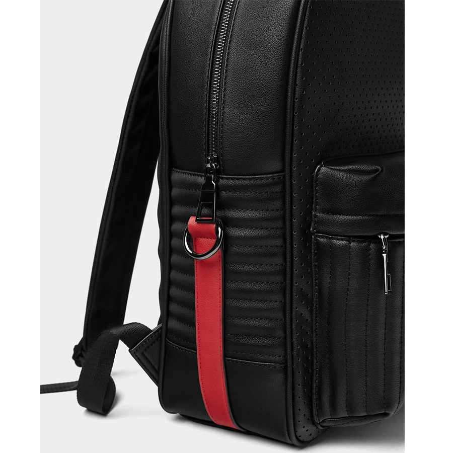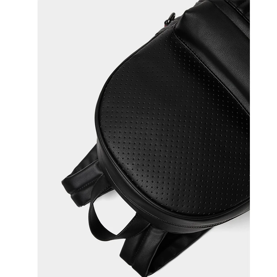 Custom Logo PU Leather Black Mens School Laptop Backpack Micro-perforated Bagpack Bag for Men