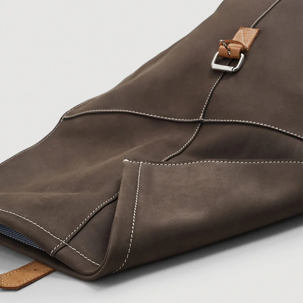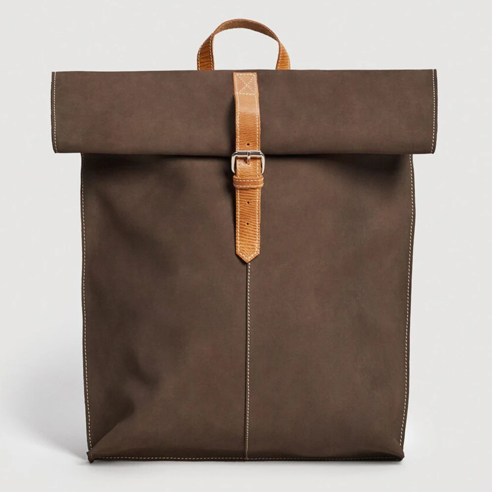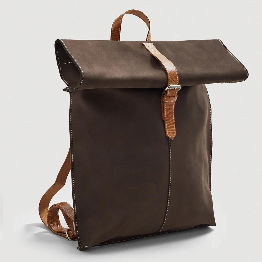Custom Logo Genuine Nubuck Leather School Backpack Soft Lapel Travel Bagpack Bag for Men