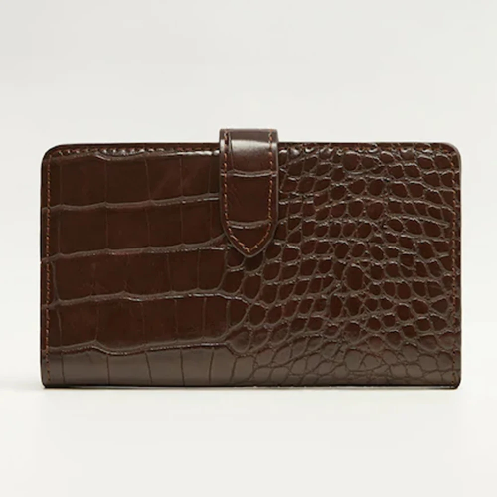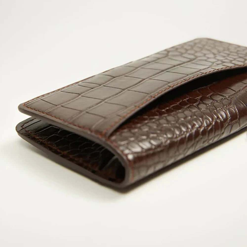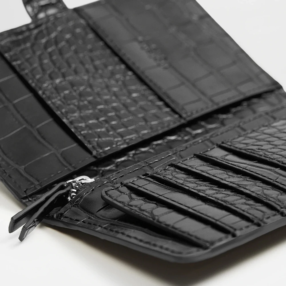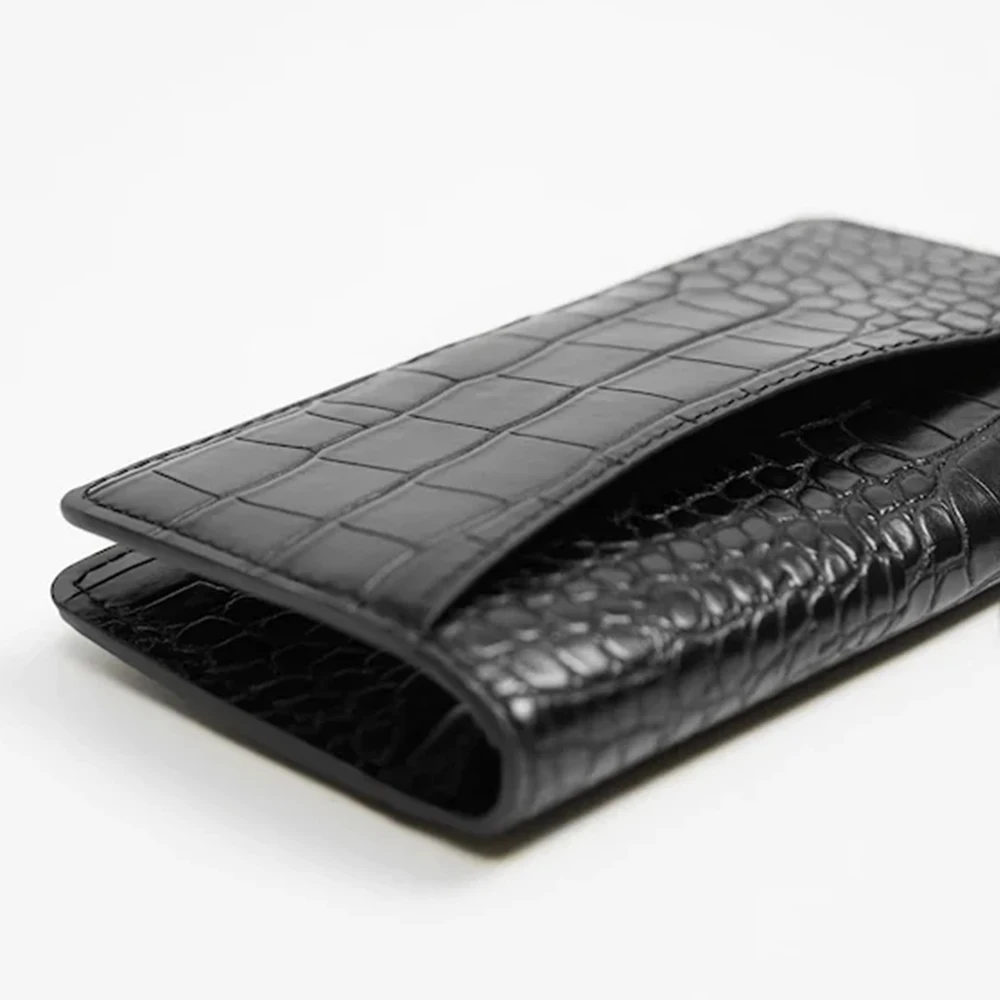 Custom Luxury PU Croc Leather Black Ladies Billfold Card Holder Wallet Money Purse for Women