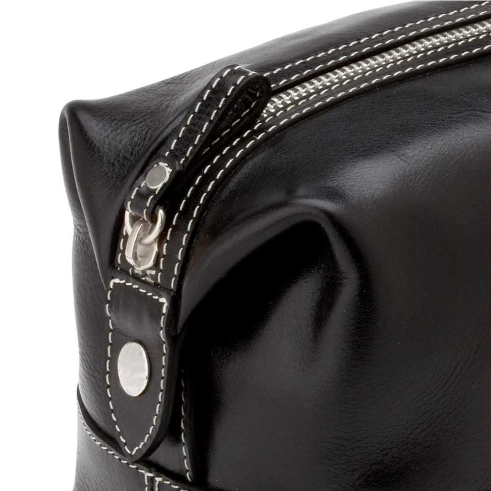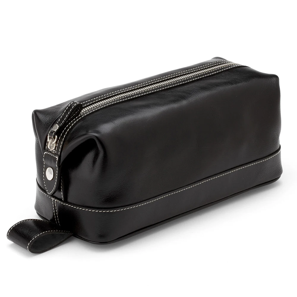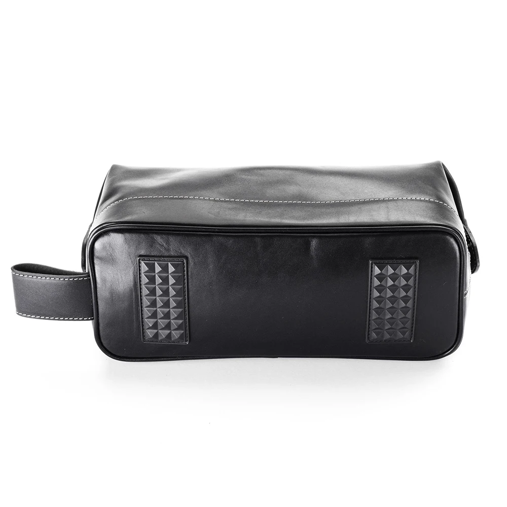 Custom Logo PU Black Leather Men's Dopp Kit Toiletry Wash Bag Travel Cosmetic Pouch for Men