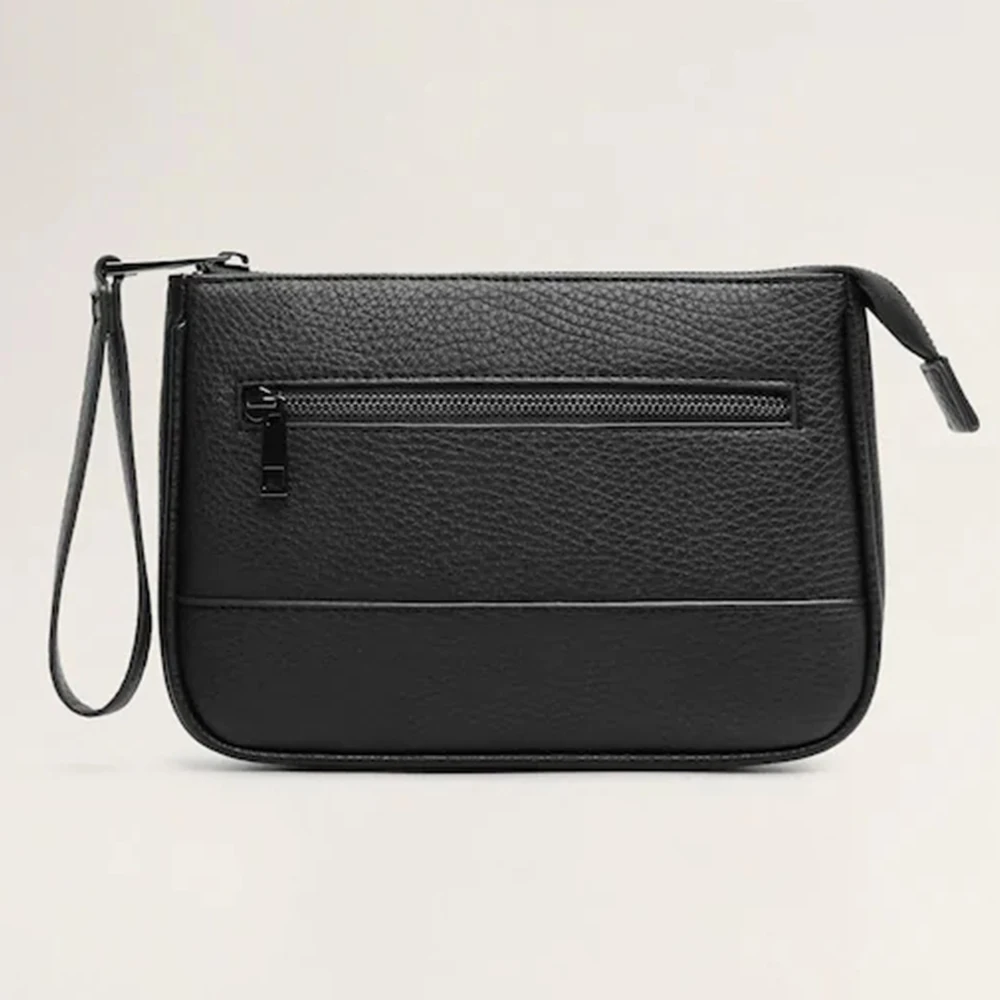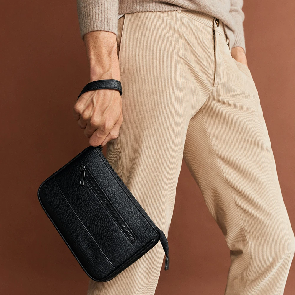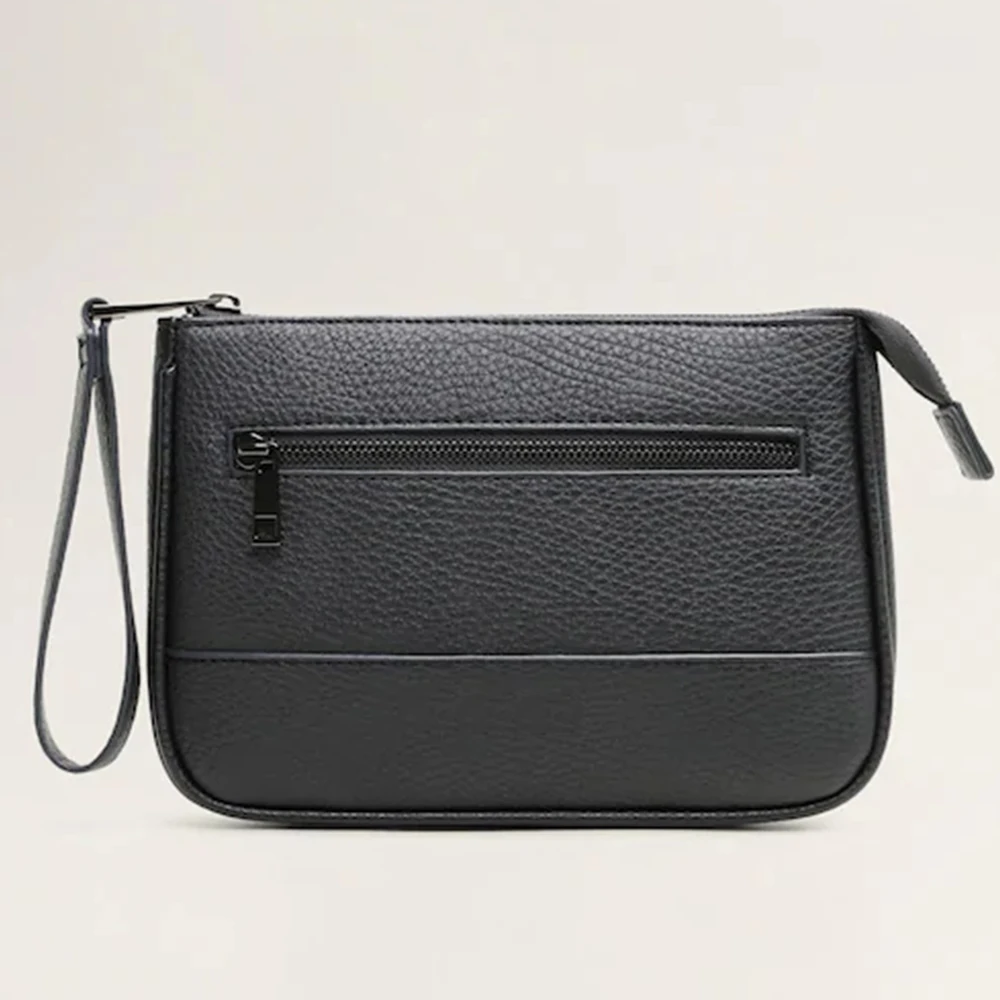 Custom Logo PU Leather Men's Clutch Wristlet Cosmetic Pouch Zipper Toiletry Wash Bag for Men