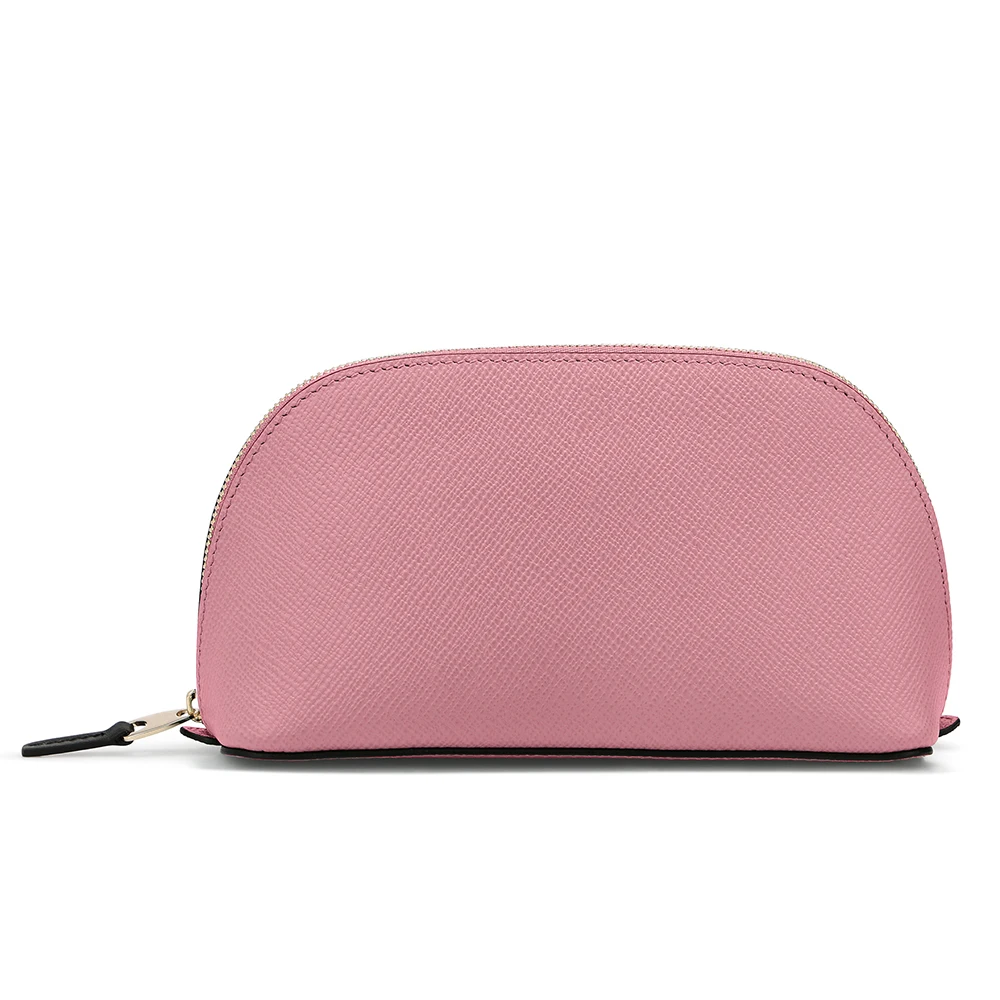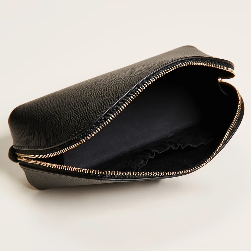 Custom PU Saffiano Leather Black Ladies Makeup Vanity Pouch Women Small Travel Cosmetic Case