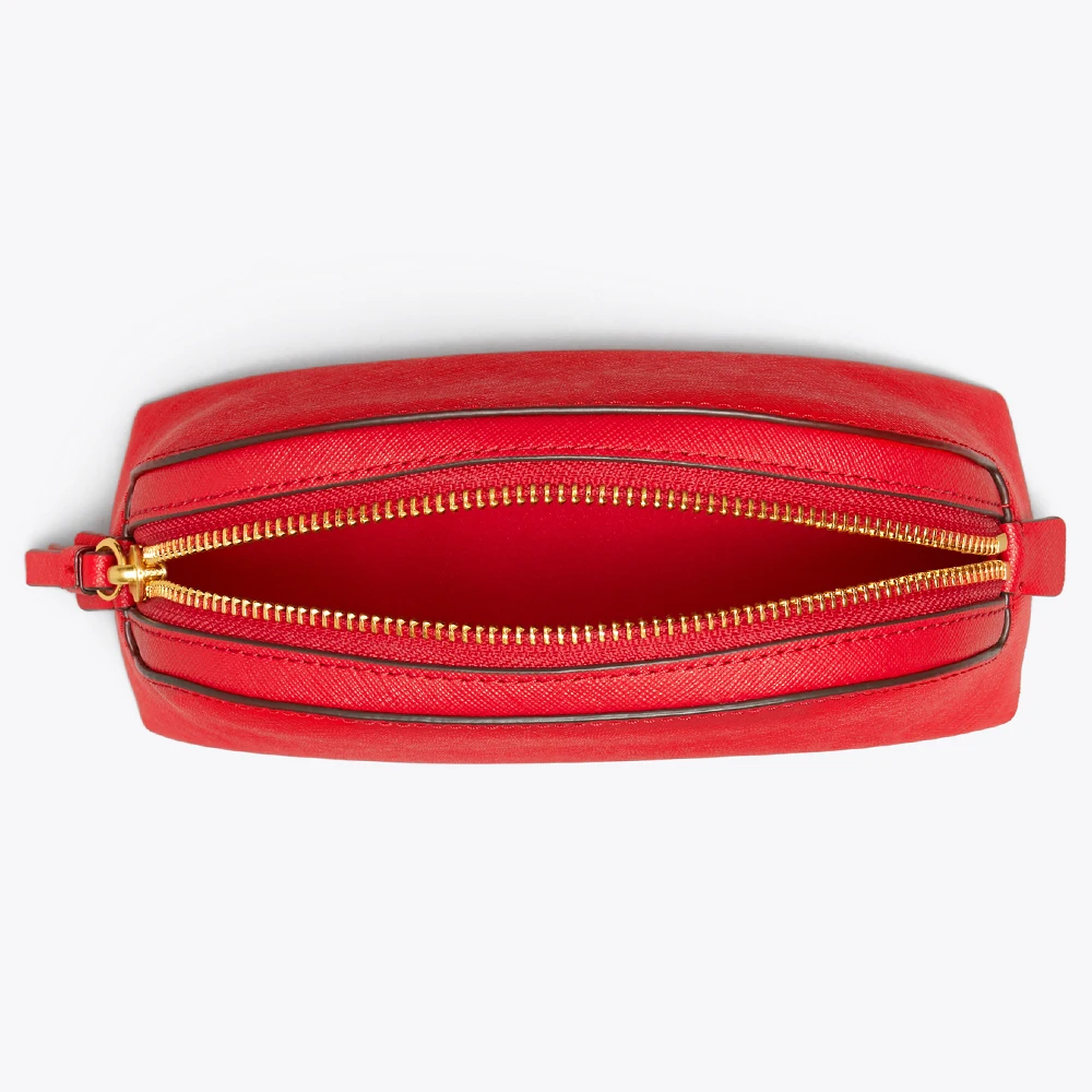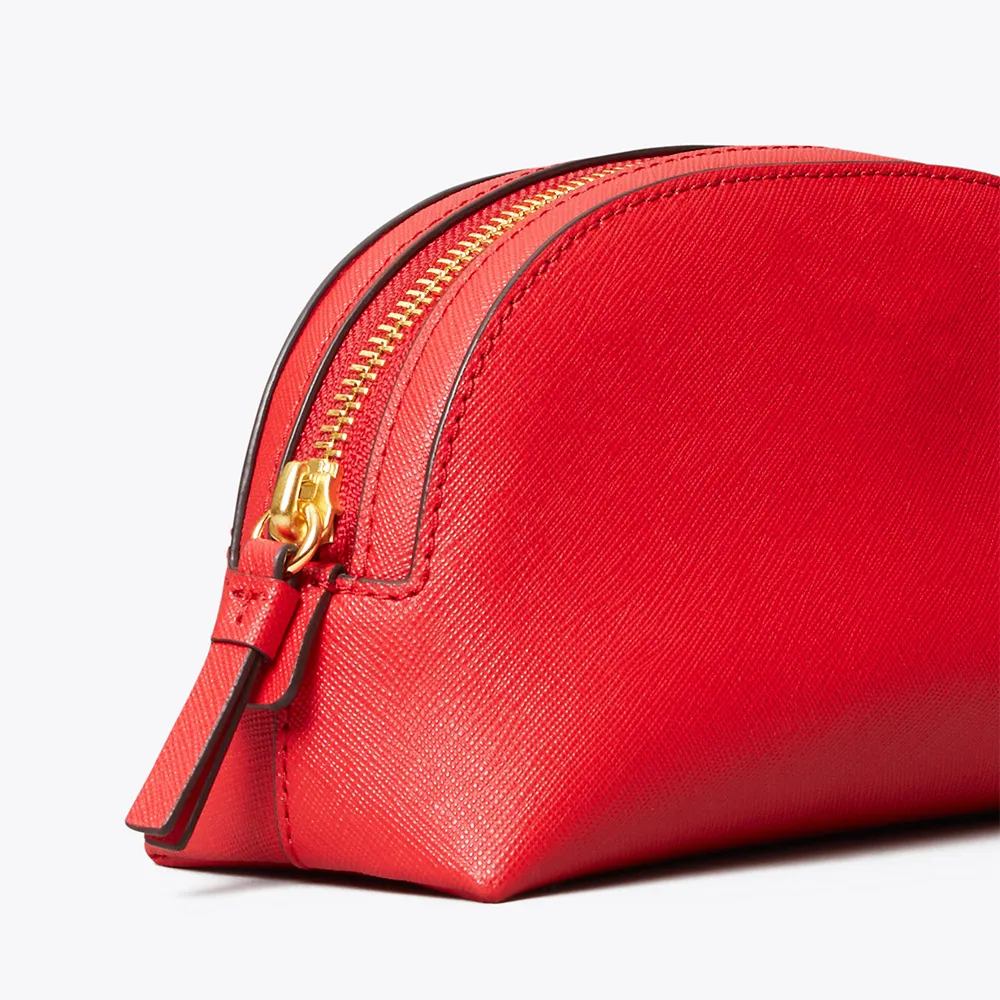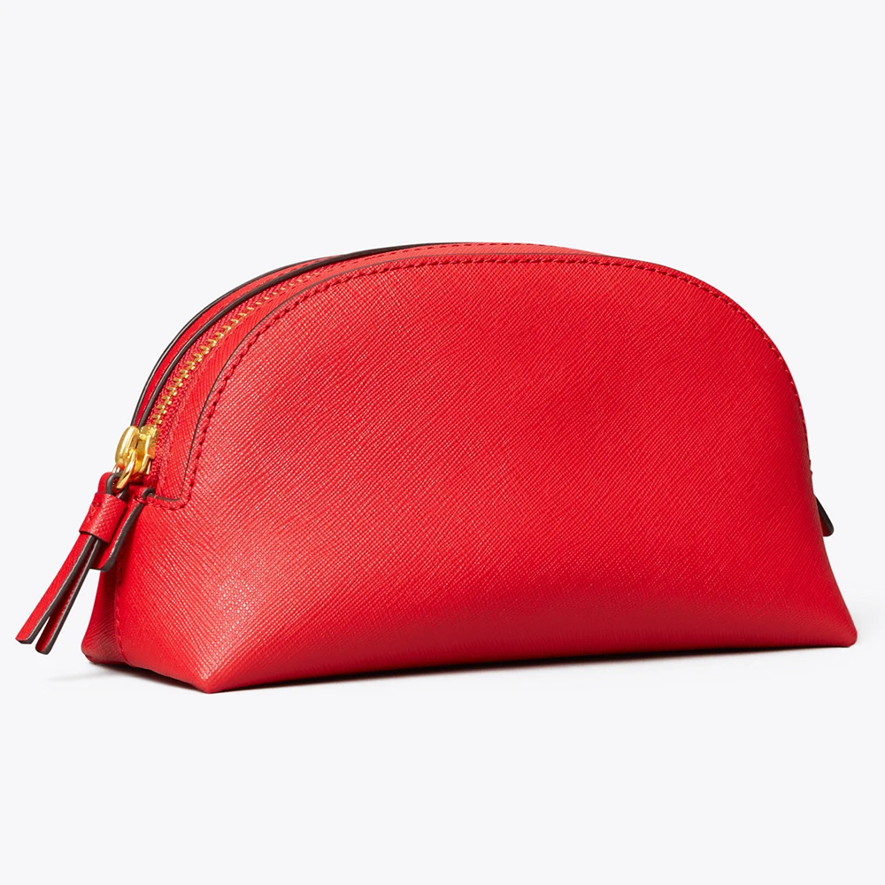 Custom Logo Saffiano Leather Red Makeup Bag Mini Travel Make up Pouch Women Small Cosmetic Case