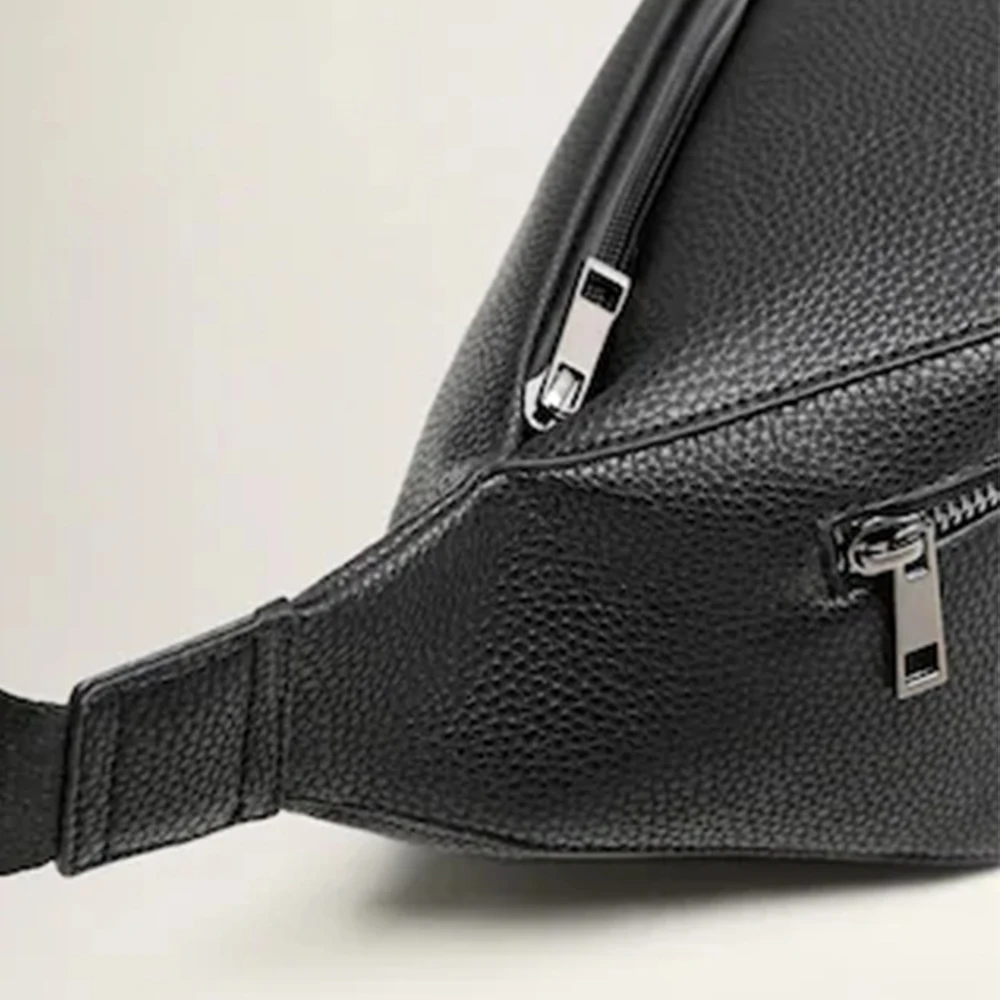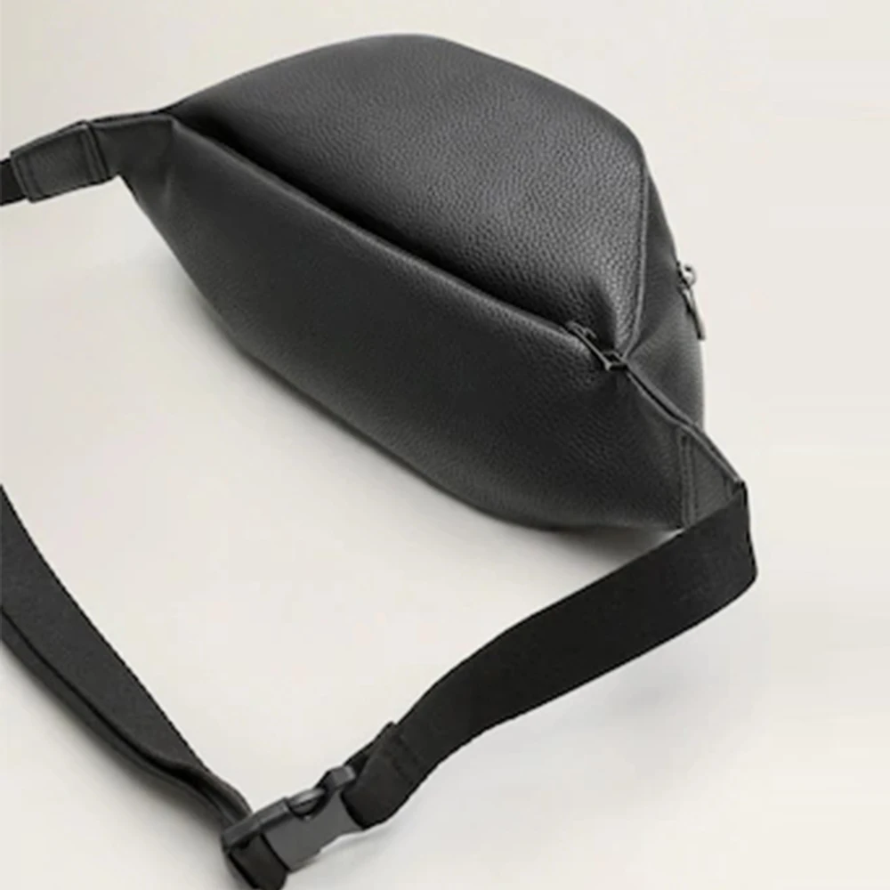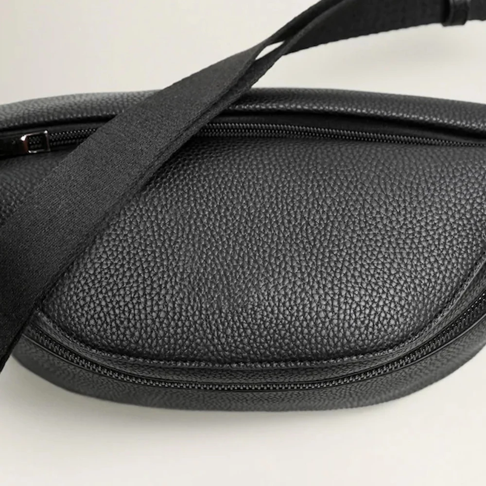 Custom Logo PU Pebble Leather Black Men's Crossbody Fanny Pack Fashion Waist Belt Bag for Men