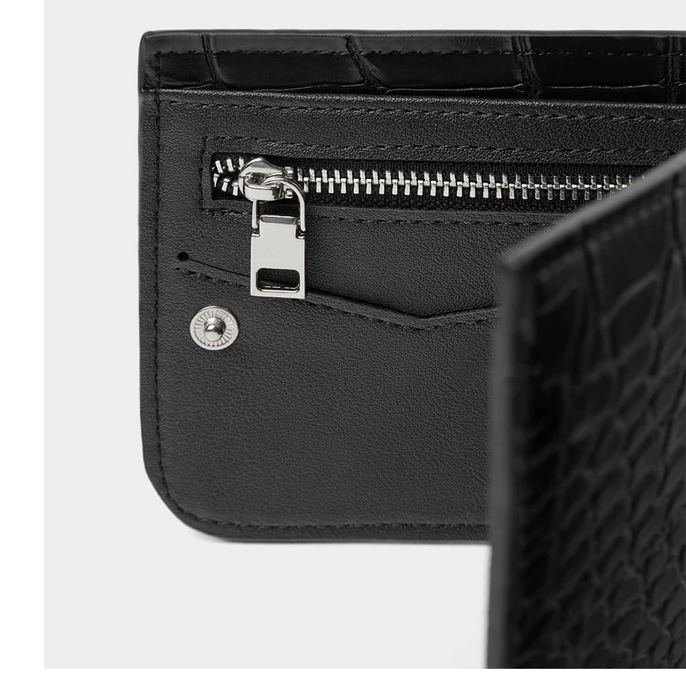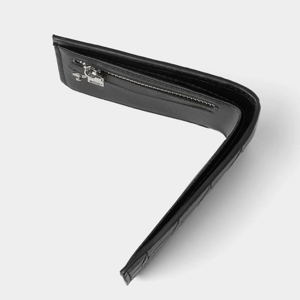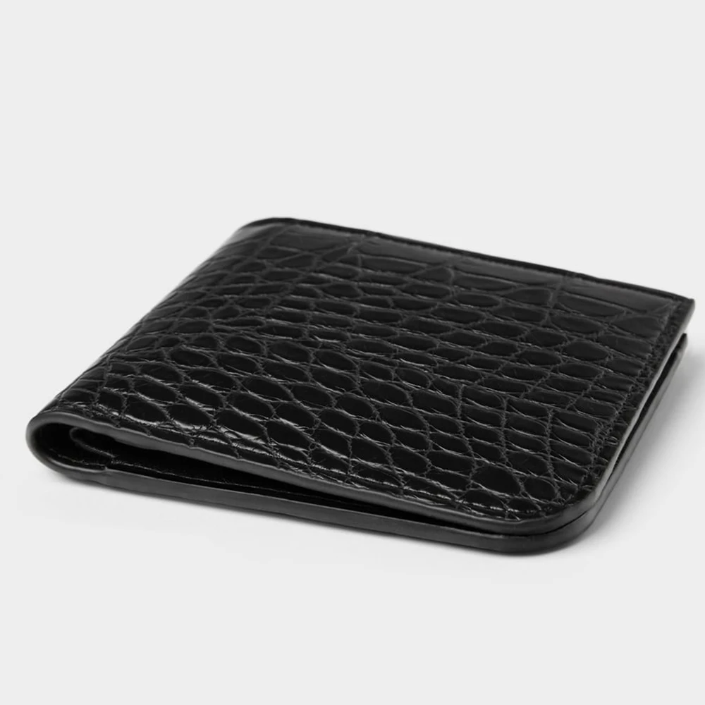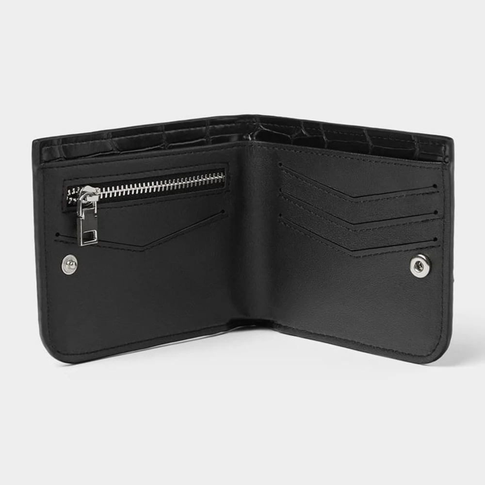 Custom Logo PU Vegan Croc Leather Black Mens Billfold Short Card Wallet Money Coin Purse for Men