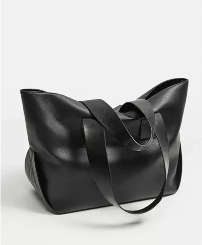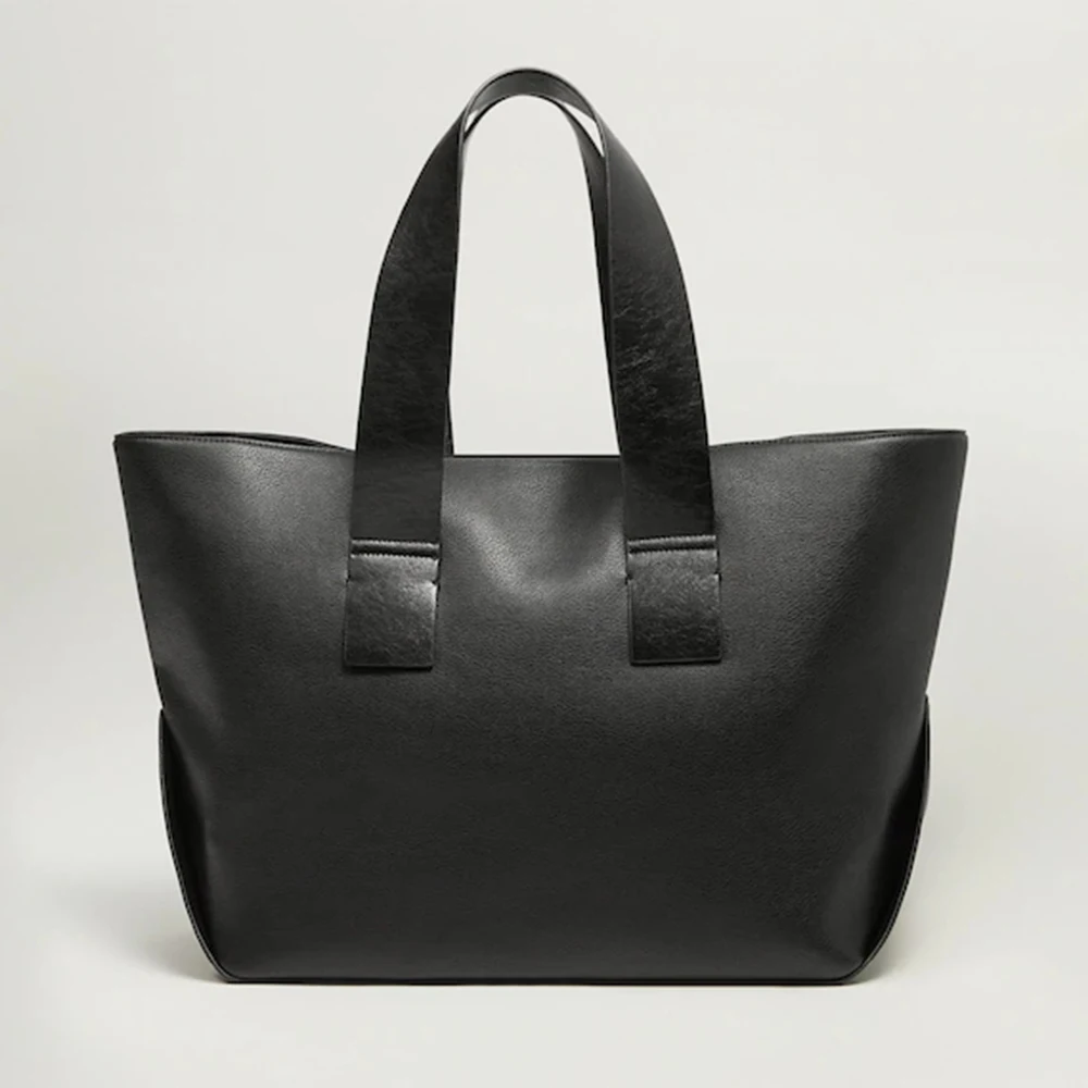 Custom Leather Black Lady Large Tote Bag Shoulder Shopper Handbag Purse for Women