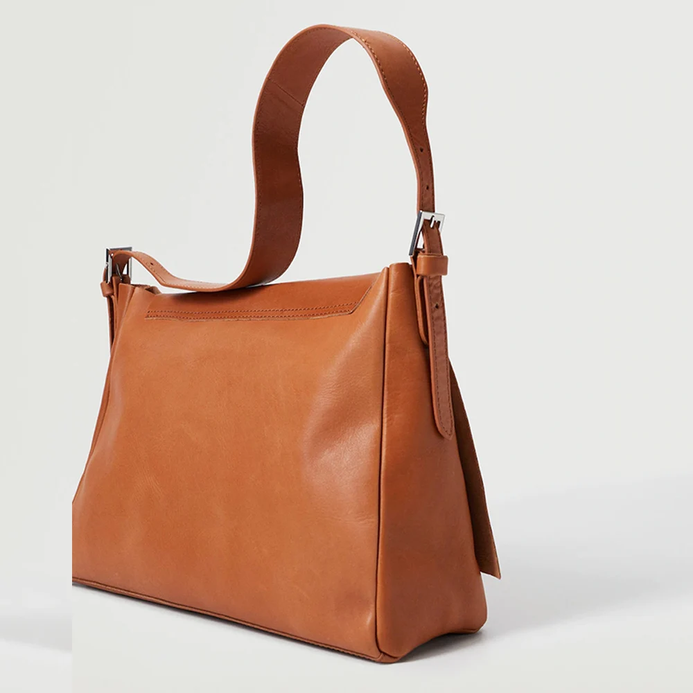 Custom Logo Tan Brown Real Leather Ladies Fashion Shoulder Hobo Handbag Purse for Women