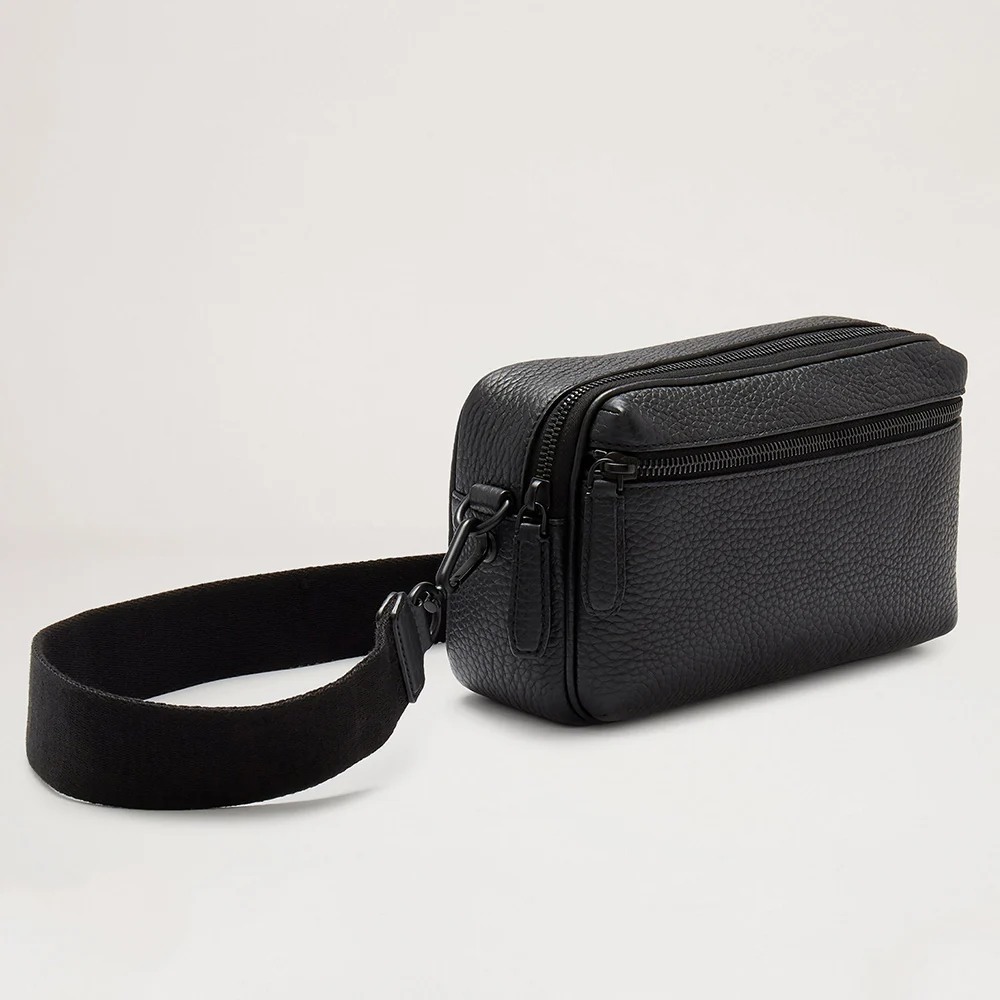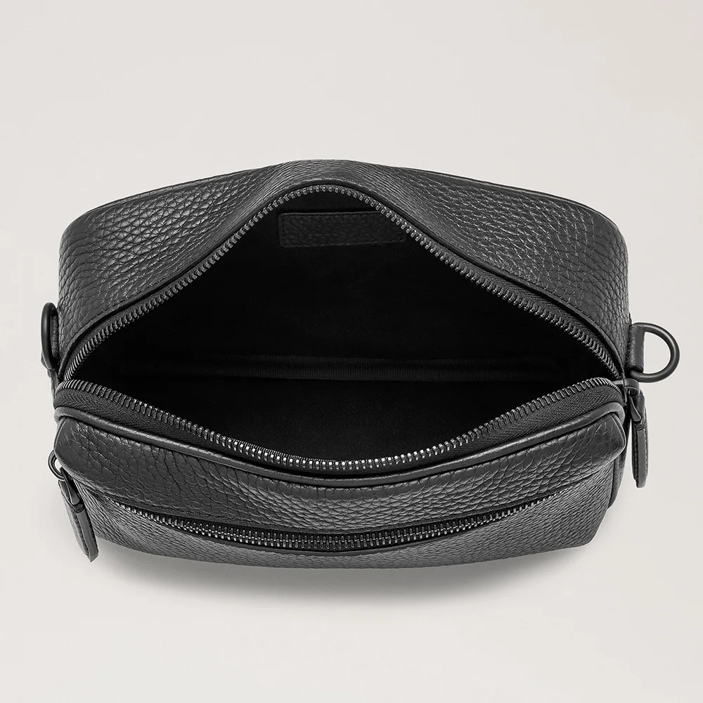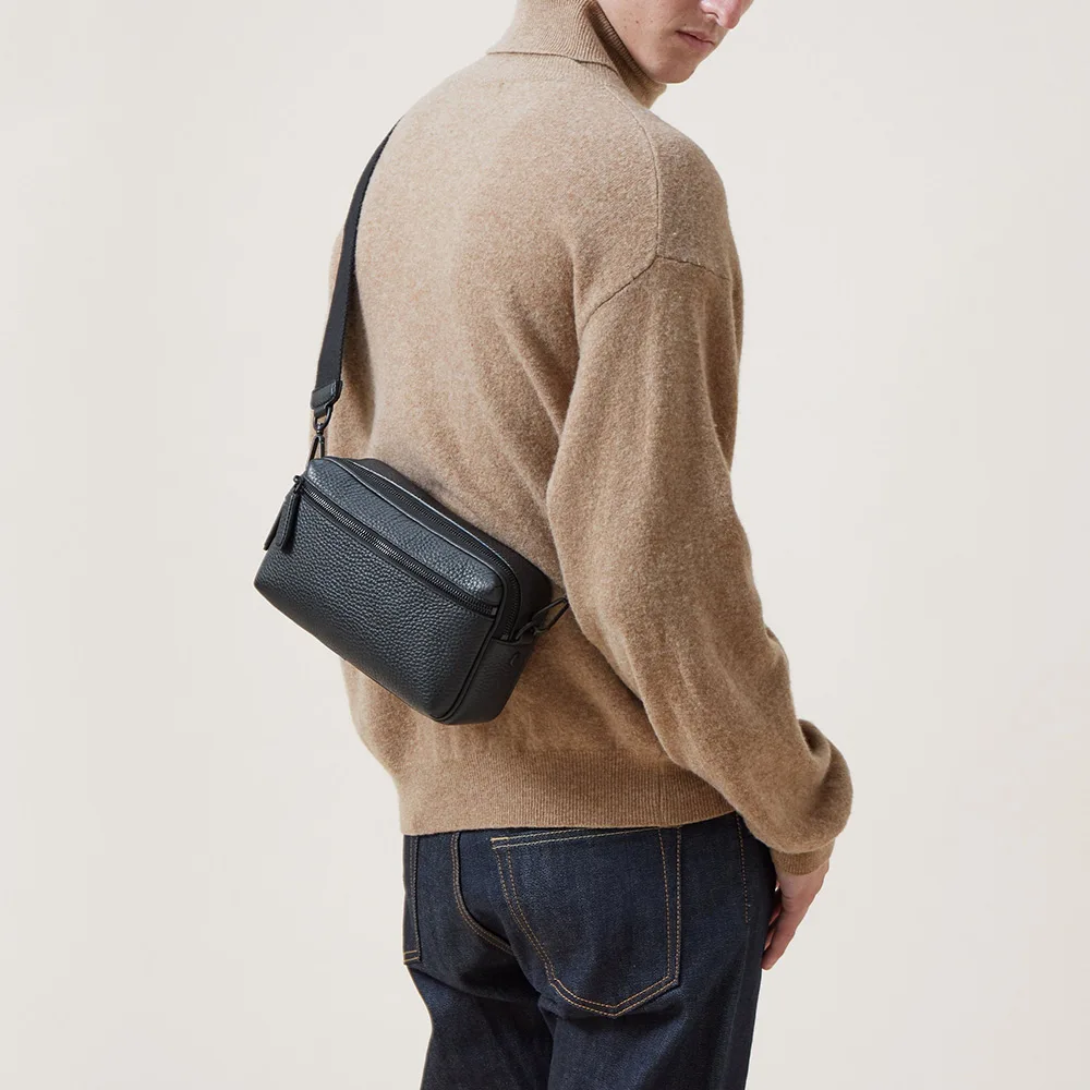 Custom Logo Pebble Leather Black Fashion Men's Zip Shoulder Messenger Crossbody Bag for Men