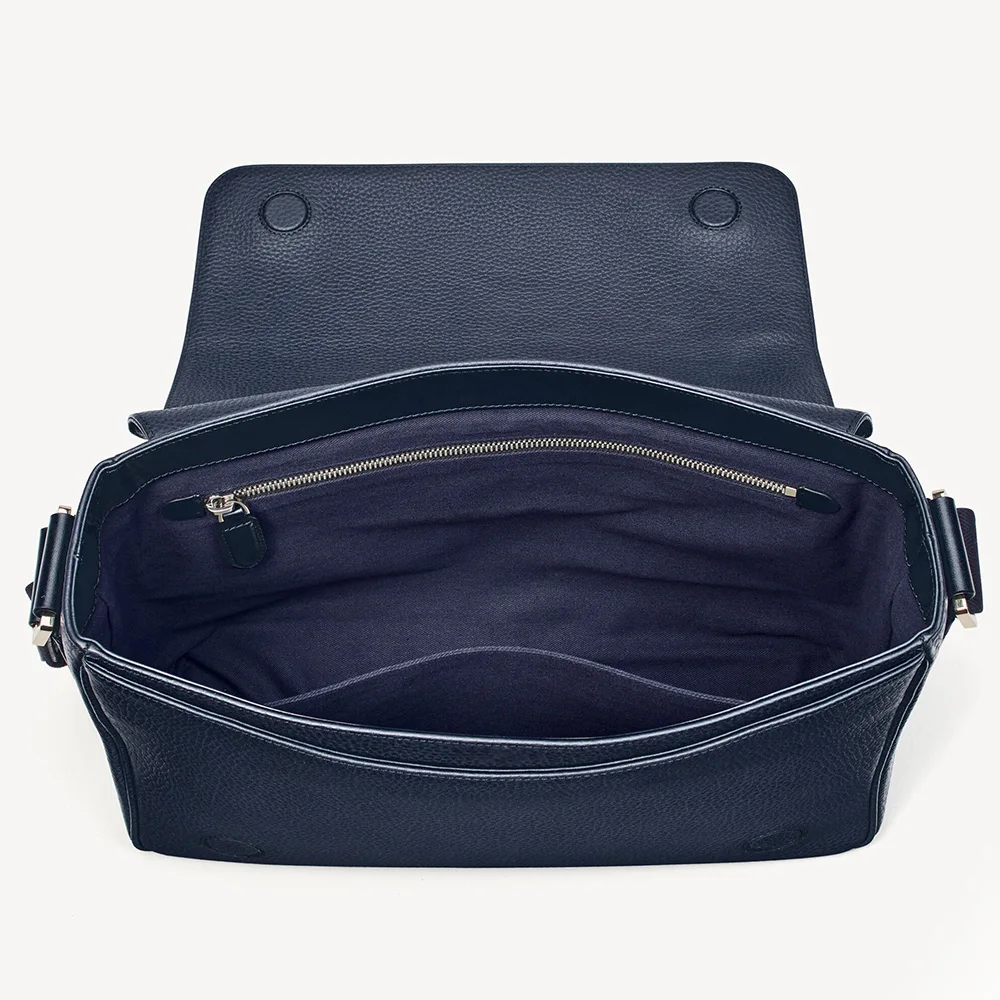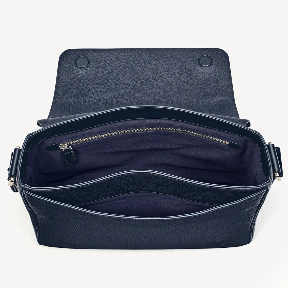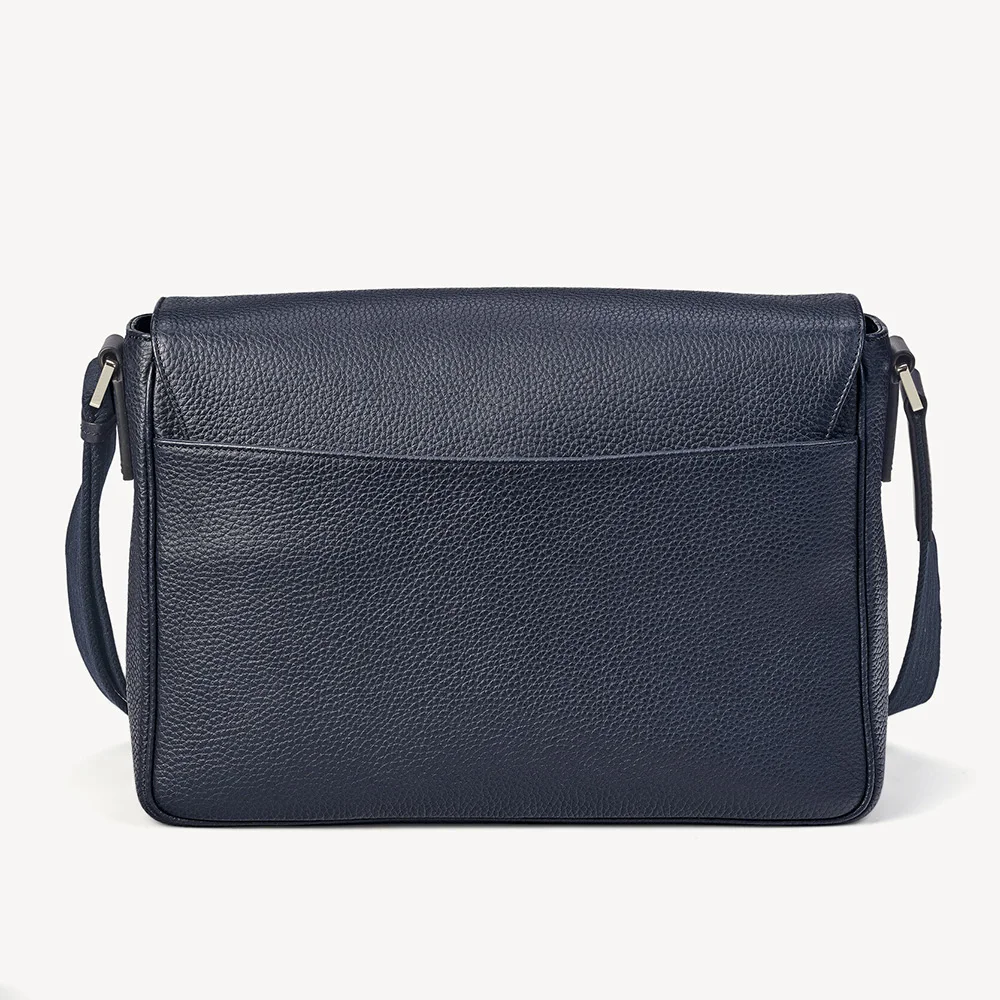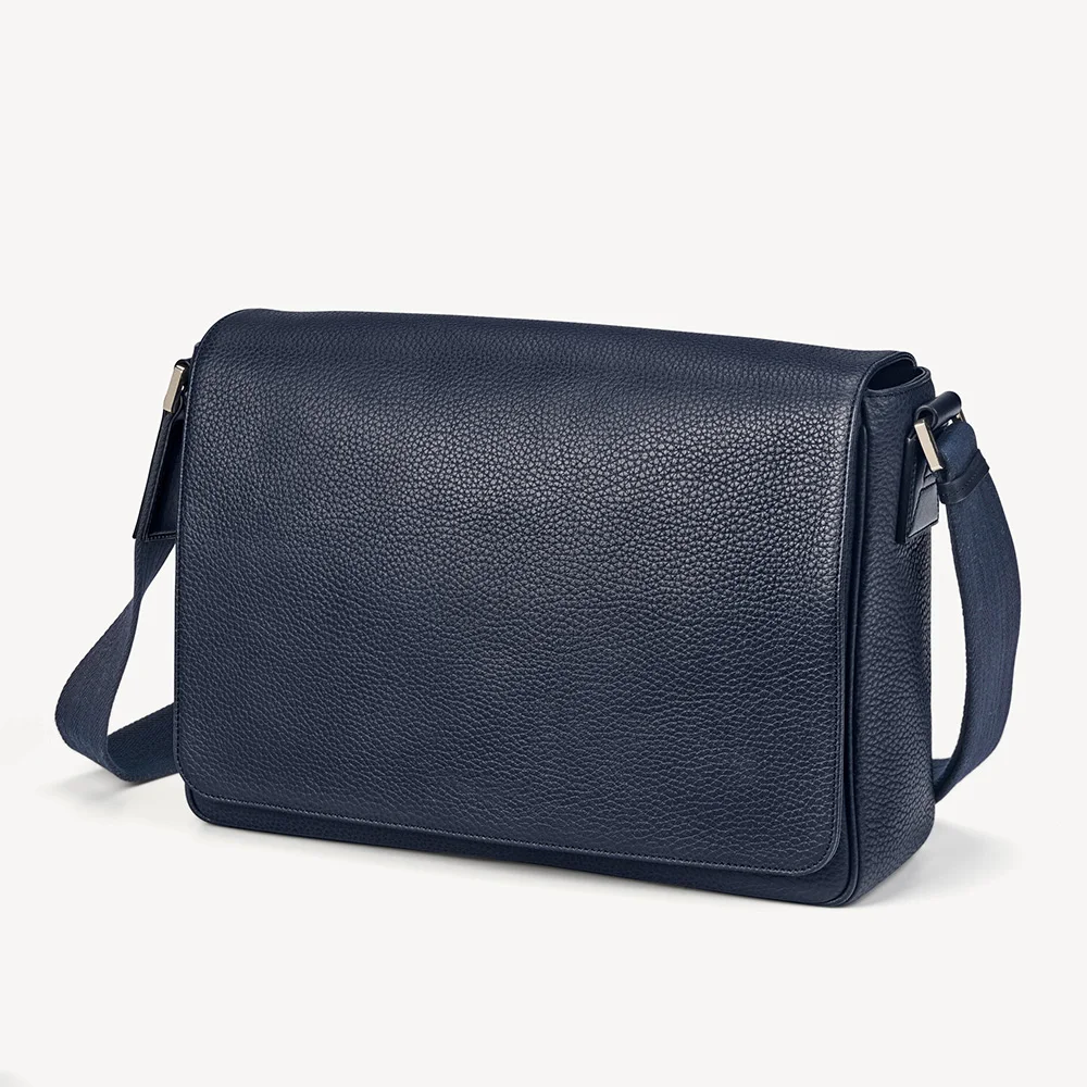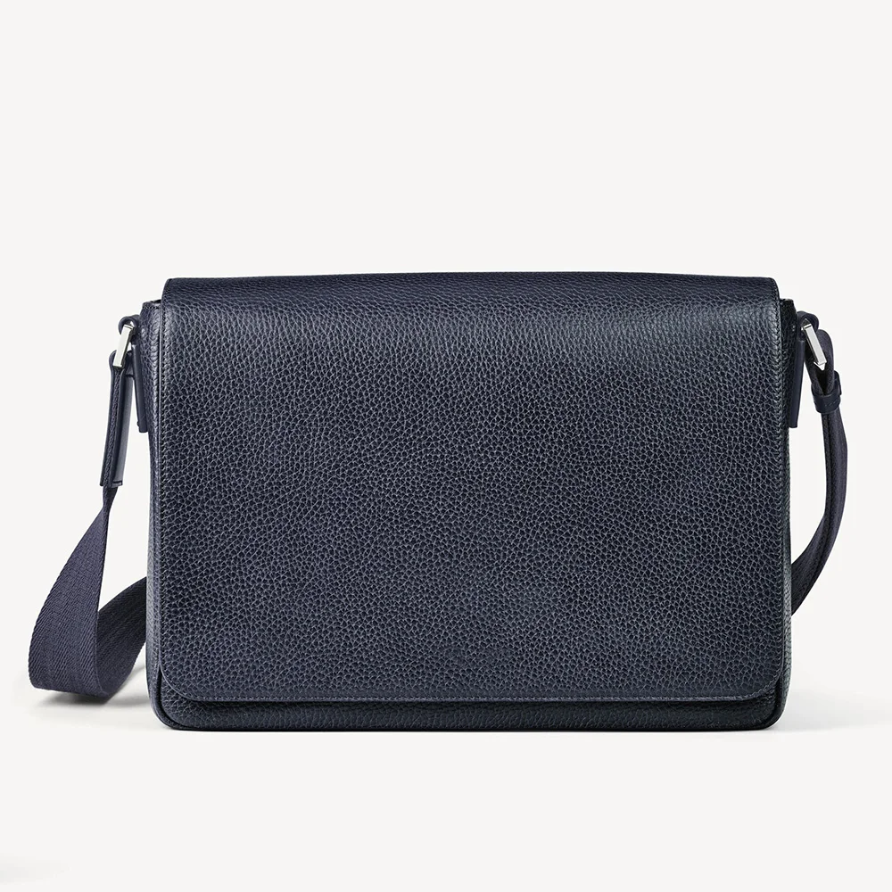 Custom Logo Pebble Leather Navy City Men's Flap Crossbody Shoulder Messenger Bag for Men