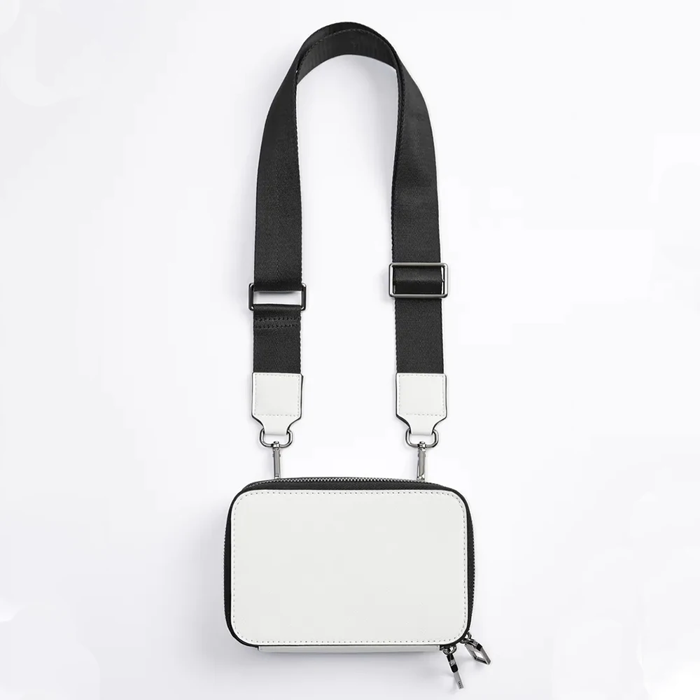 Custom Logo White Saffinao Leather Mens Crossbody Sling Shoulder Messenger Bag for Men