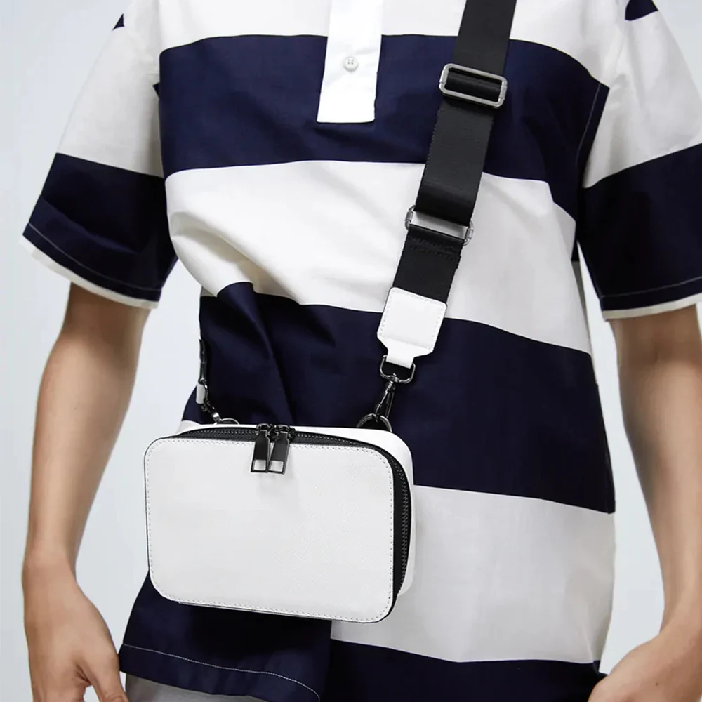 Custom Logo White Saffinao Leather Mens Crossbody Sling Pack Small Messenger Bag for Men